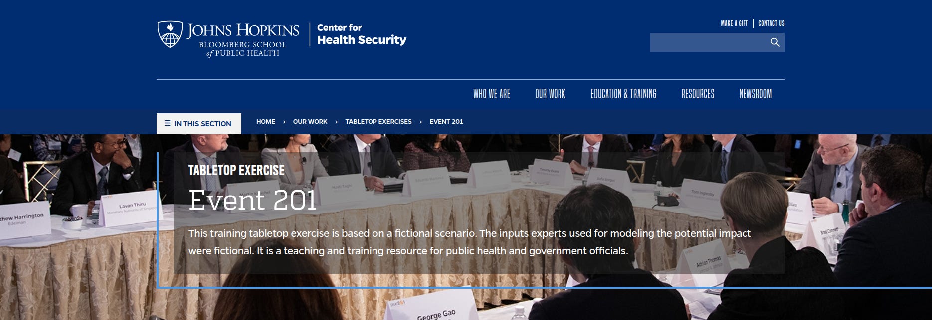 This pandemic simulation exercise conducted by Johns Hopkins Center for Health Security, World Economic Forum, and Gates Foundation just months before COVID-19 "vividly demonstrated a number of these important gaps in pandemic preparedness" and outlined public-private cooperation mechanisms.The Private Sector Roundtable for Global Health Security (2020)82