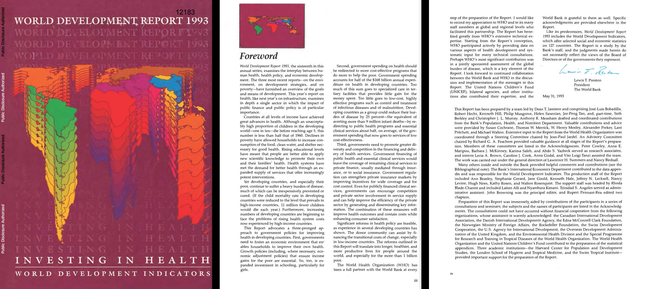 The World Bank's flagship health policy document established cost-effectiveness analysis as the primary framework for global health resource allocation, providing the financial implementation mechanism for the integrated governance systems outlined in the 1992 reports and the expert networks created through ESWI. The report promoted market-based healthcare delivery and prioritised interventions based on economic modelling rather than clinical need, transforming health outcomes into financial calculations that could be systematically managed through the surveillance data collected via INCLEN and GEMS networks. This framework embedded technocratic efficiency metrics into international development funding, creating the financial architecture for conditioning health aid on compliance with standardised indicators developed through the Children's Vaccine Initiative and Task Force for Child Survival coordination models.Creutzfeld-Jacobs disease (1996)14