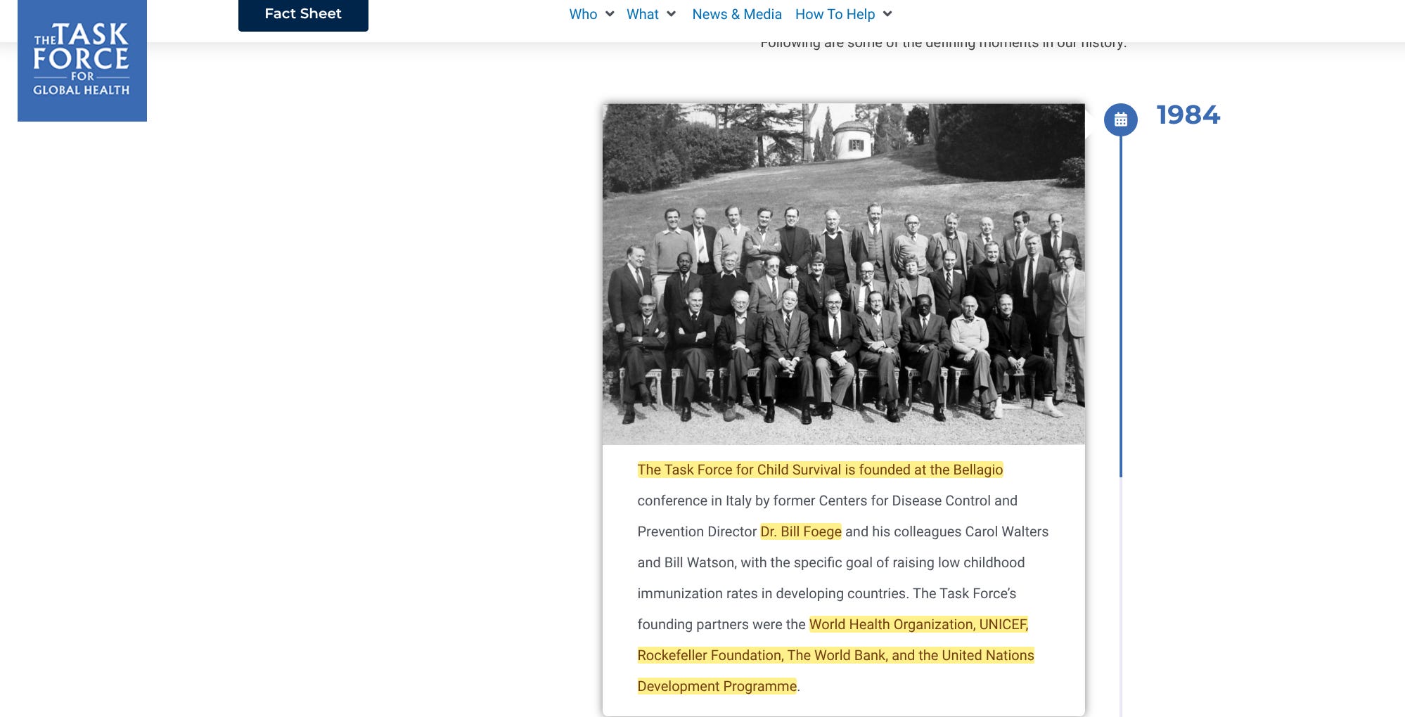 The International Clinical Epidemiology Network, launched by Rockefeller Foundation, established standardised disease surveillance and clinical research protocols across developing nations, operationalising Foege's pandemic preparedness concepts within the global health infrastructure framework established at Alma-Ata. INCLEN created comprehensive infrastructure for real-time health data collection and expert consultation networks just as the AIDS epidemic emerged, providing the operational framework for coordinated international health interventions that transformed local health challenges into globally managed datasets. The network integrated clinical research with the environmental monitoring systems established through UNEP GEMS, creating the foundation for comprehensive health surveillance that would later enable coordinated international responses to health emergencies.Task Force for Child Survival (1984)8