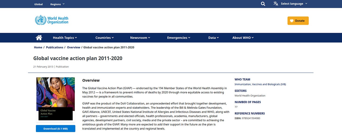 Through the Rockefeller Foundation’s Planetary Health52 initiative and the 2019 Berlin Principles53, a new moral logic emerged: humans are not stewards of nature, but ecological disruptors. This phase eliminated the assumption of human exceptionalism in governance frameworks. ‘Biodiversity conservation perspectives’ began to apply equally to human and animal populations. Interventions once unthinkable — behavioral controls, reproductive management, and resource restrictions — became ethically justified if framed as necessary for planetary balance or ‘species equity’.WHO's Global Vaccine Action Plan (2011–2020)54
