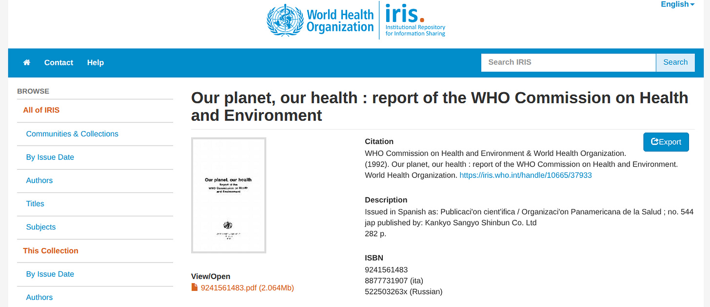 The Institute of Medicine's landmark report, co-chaired by Joshua Lederberg, established the core scientific argument for globalised health governance by building on the CVI's systematic approach to health interventions. The report emphasised the inevitability of disease spread in an interconnected world and promoted surveillance and predictive modelling as primary tools, providing the scientific rationale for expanding the surveillance networks developed through INCLEN and GEMS into comprehensive global monitoring systems. This report transformed the Task Force for Child Survival's operational coordination model into a permanent scientific framework that justified continuous surveillance and intervention capabilities, establishing the intellectual foundation for treating health as a global security issue requiring systematic technocratic management rather than clinical response.Our Planet, Our Health (1992)12