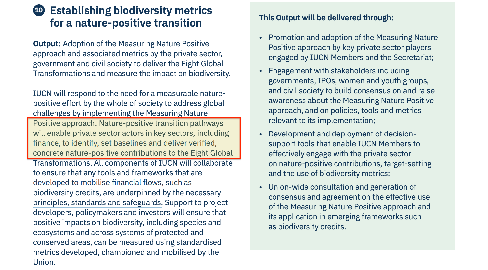 The IUCN does not merely develop metrics; it champions them (advocacy) and mobilises them (deployment into institutional infrastructure). This is an organisation actively wiring its measurement products into the financial system.