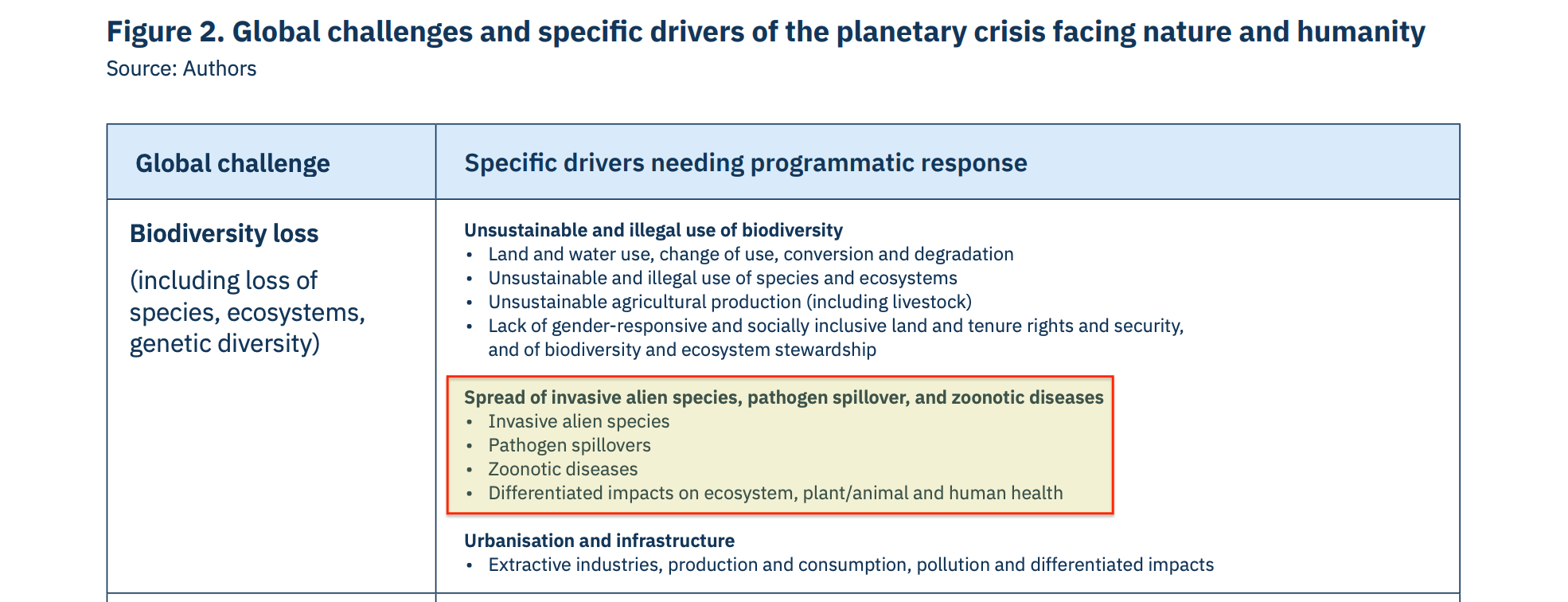 The inclusion of pandemics is significant. The Programme contains a dedicated ‘One Health’ pathway integrating biodiversity and health sectors. The same driver table that identifies ‘financial, economic, legal, and trade and investment systems’ as causes of biodiversity loss also lists ‘pathogen spillovers’ and ‘zoonotic diseases’.