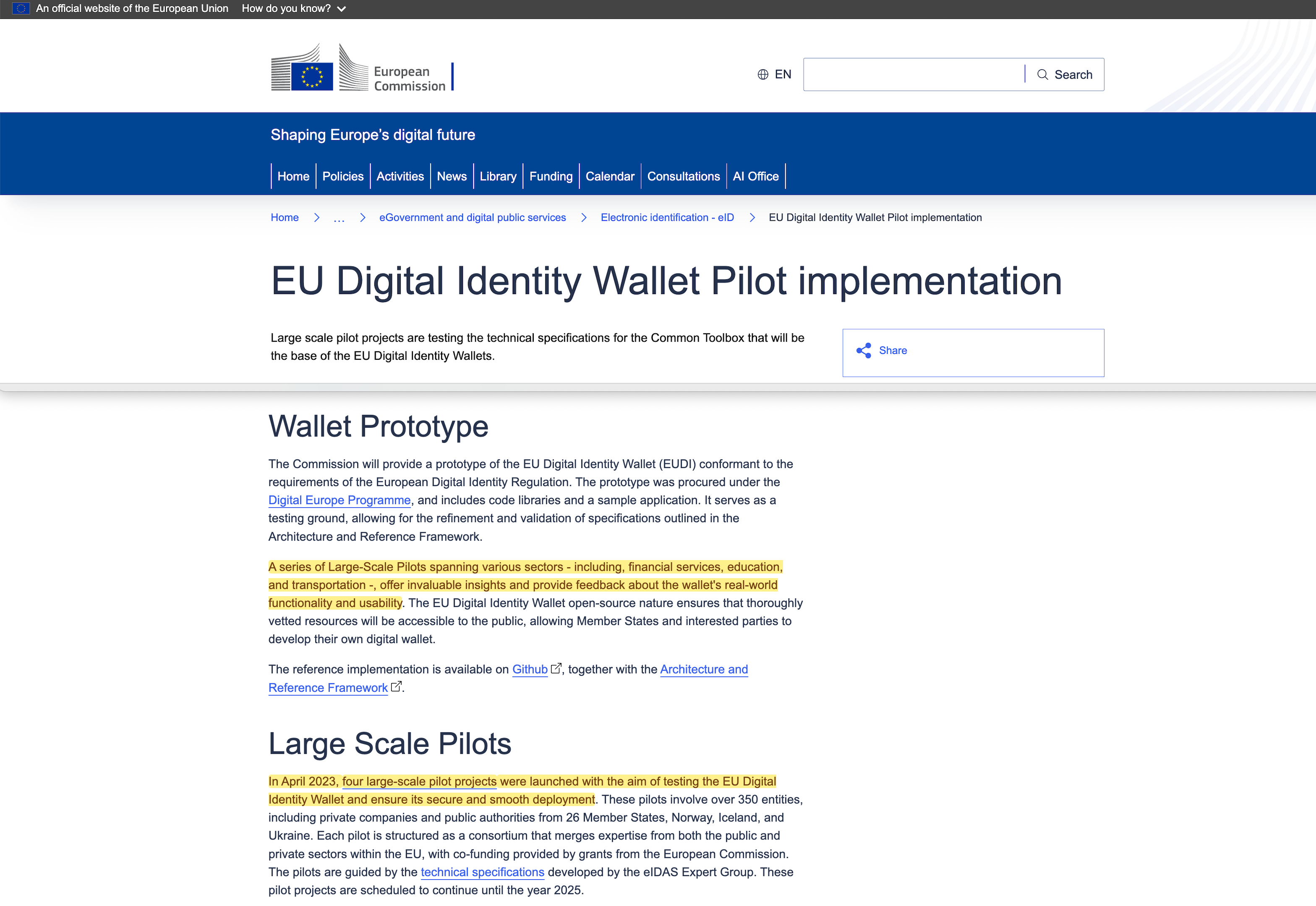 European Commission pilots tested wallets17 holding university degrees, professional qualifications, and ESG compliance certificates simultaneously18. Suppliers bidding on procurement contracts had to upload sustainability credentials as verifiable attestations.