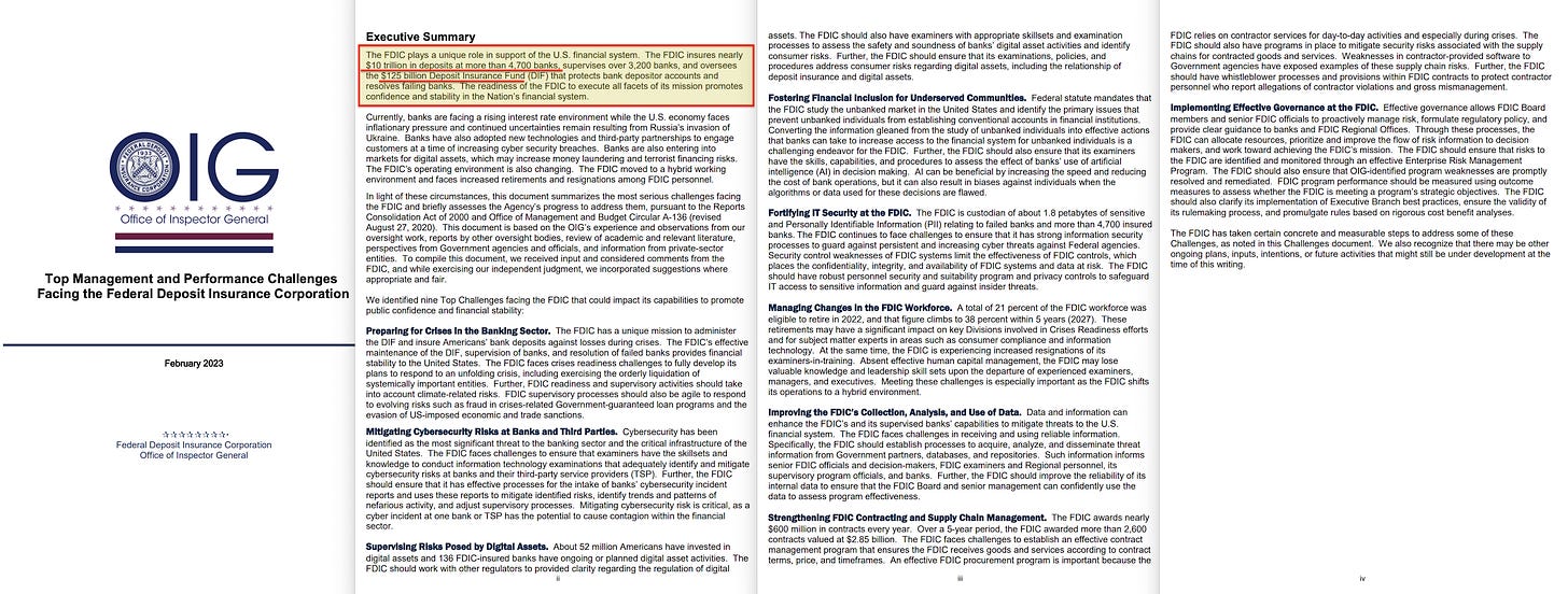 If multiple major institutions fail at the same time, the insurance runs out almost immediately, and even insured depositors find themselves holding claims in the resolution queue.