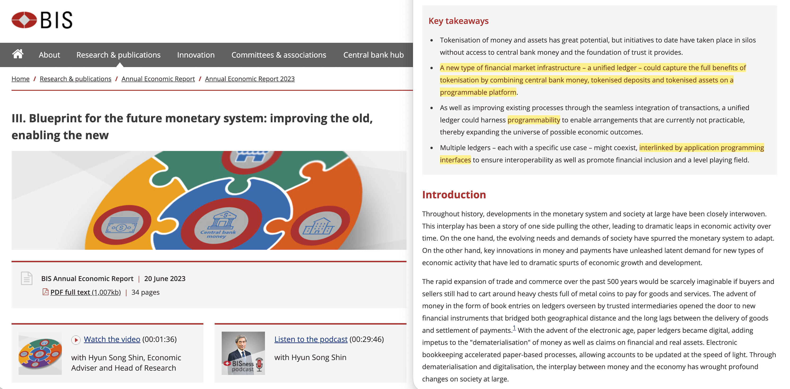 The BIS has described its ‘unified ledger’46 — a shared programmable platform where central bank digital currencies, tokenised commercial bank deposits, and tokenised assets — securities, bonds, likely property — coexist and settle atomically.