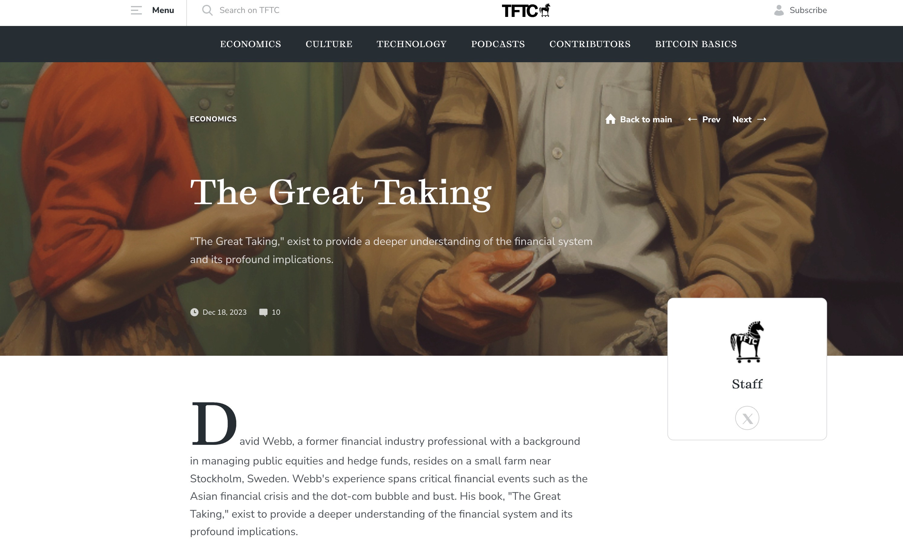 I have been educating on The Going Direct Reset since 2021. I didn't read The Great Taking until last year and it was the catalyst for me. I've done a lot of research that supported what David Rogers Webb said.