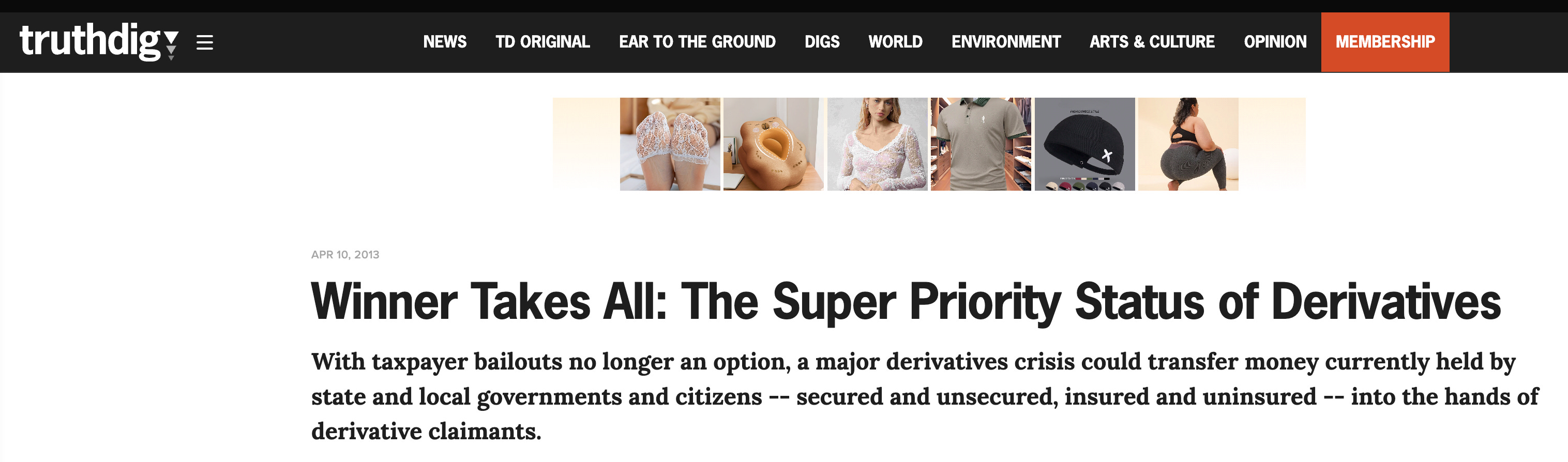 The Bankruptcy Abuse Prevention and Consumer Protection Act of 200522 gave derivatives counterparties super-priority status23, letting them seize collateral from a failing institution without going through bankruptcy proceedings at all. In a crisis severe enough to threaten the central clearing infrastructure, the collateral pool backing derivatives exposures includes the securities nominally held for people like you through the DTC.