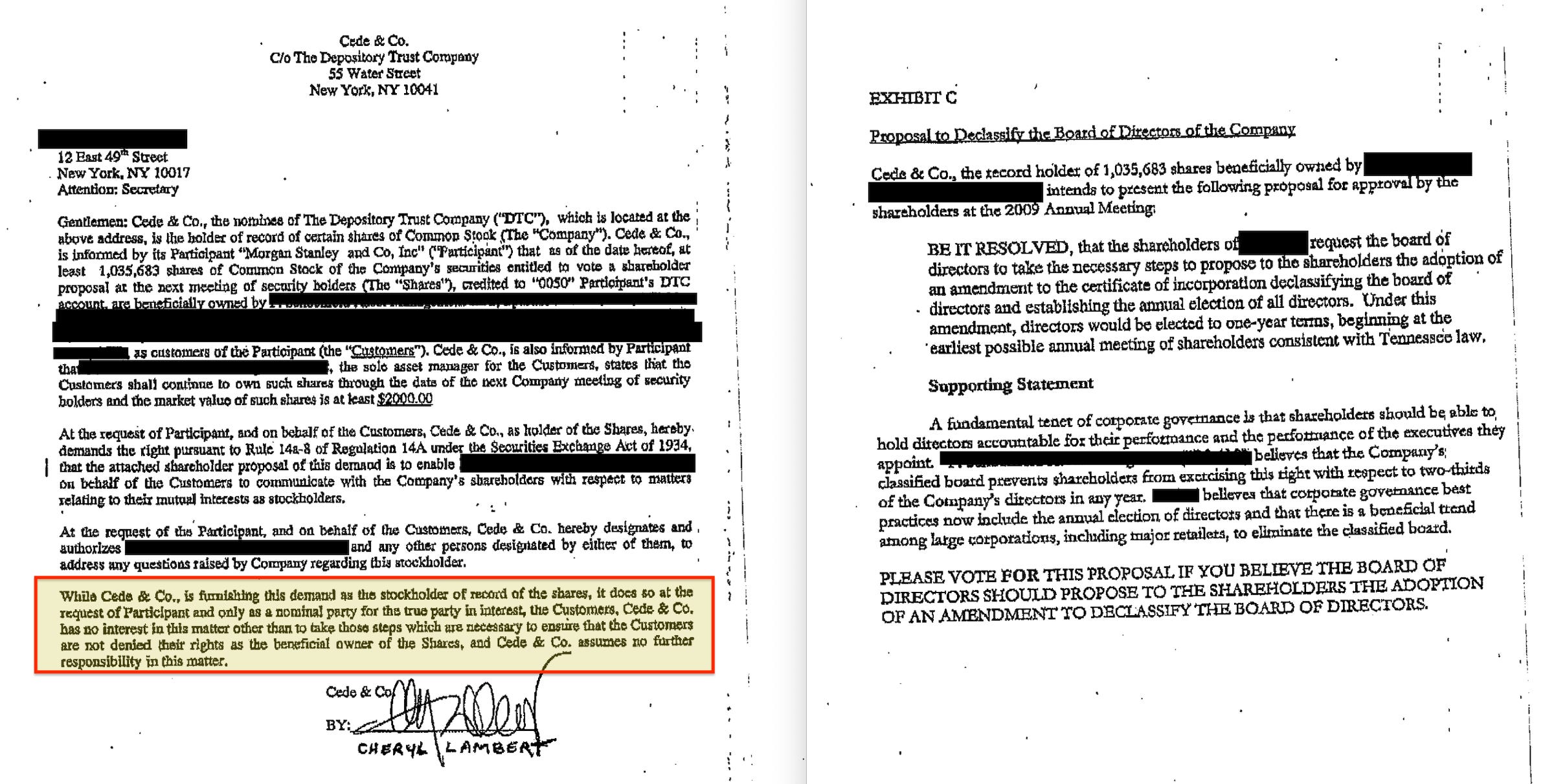 When you buy shares through a broker, you probably believe you own specific securities held in your account. The legal reality is more complicated. Since the 1970s, most securities in the United States have been held through a central depository: the Depository Trust Company18 (DTC) holds the actual securities, and its nominee Cede & Co19 is the registered owner on the books of the issuing companies20.