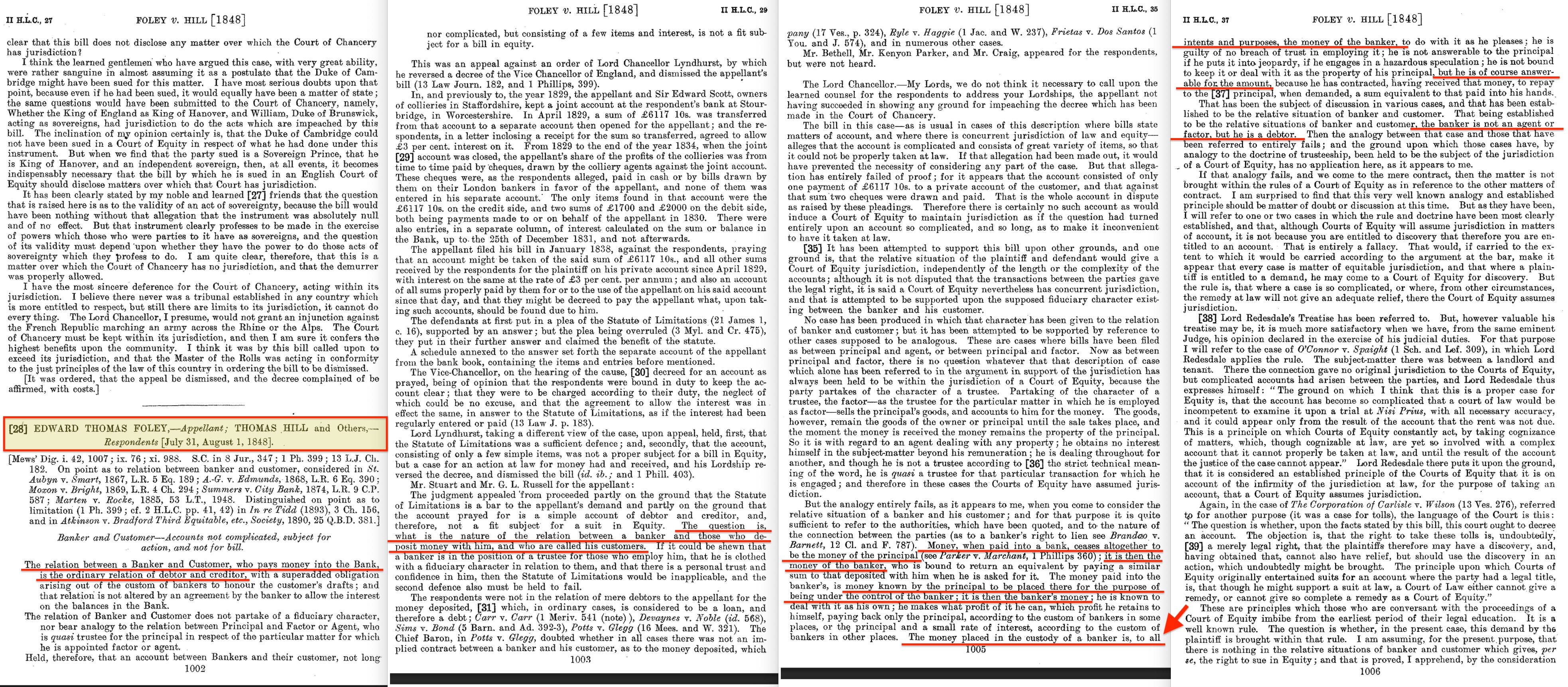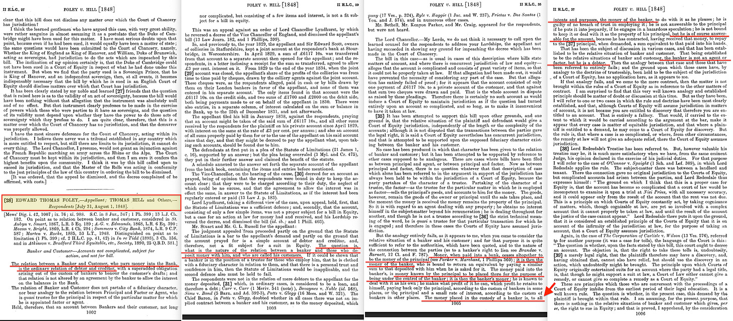 When you place money in a bank account, you perhaps believe you are storing your property in a secure location. The law sees the transaction differently. Under the precedent set by Foley v Hill3 in 1848 and maintained ever since, a bank deposit creates a debtor-creditor relationship: you hand over legal title to the cash, and in return you get a contractual claim against the bank — a promise that they will pay you back upon request. The bank owns the money. You own an IOU.