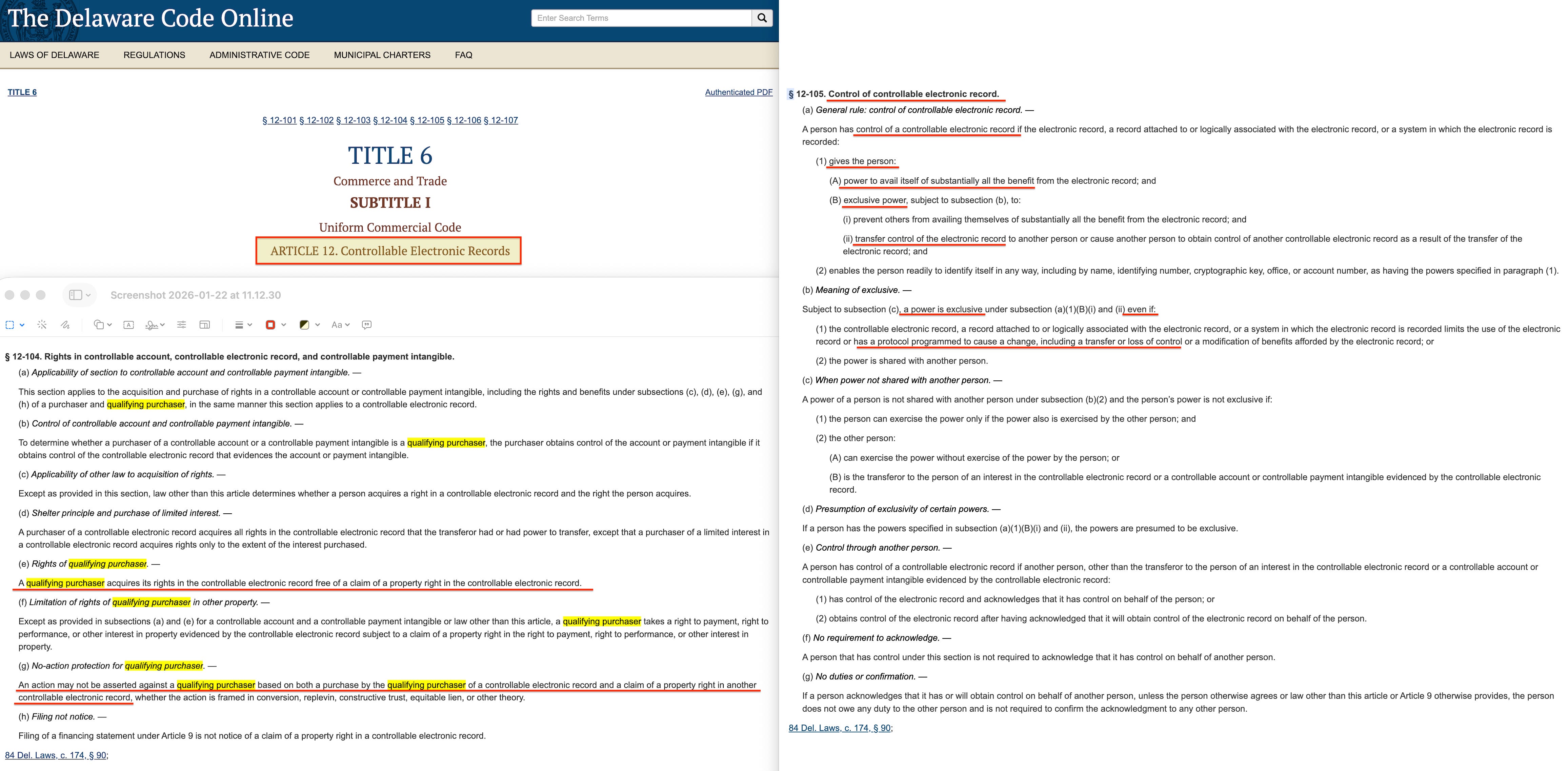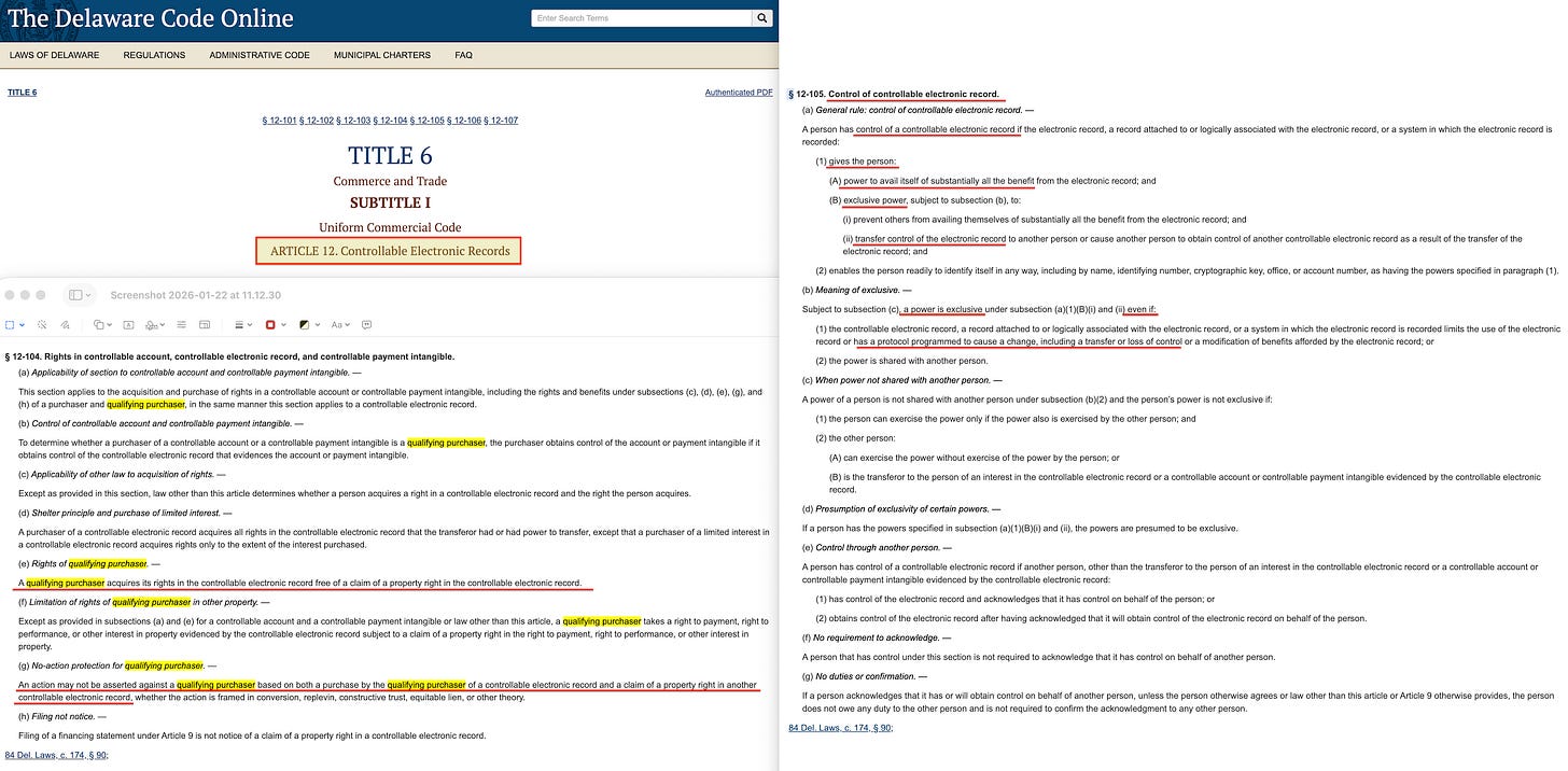 This idea first appeared in the 1994 revision of UCC Article 8, applied to indirectly held securities26. It spread to electronic chattel paper in the 1998 revision of Article 927. And in 2022, it was extended to all digital assets through Article 12, which covers what the drafters called ‘controllable electronic records’28.