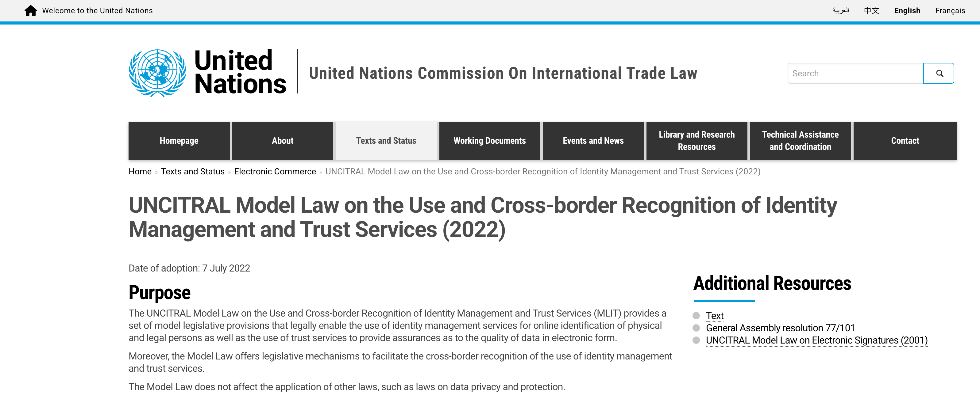 Meanwhile, UNCITRAL Working Group IV is developing a Model Law on Identity Management and Trust Services54. Control over assets requires knowing who is exercising control.