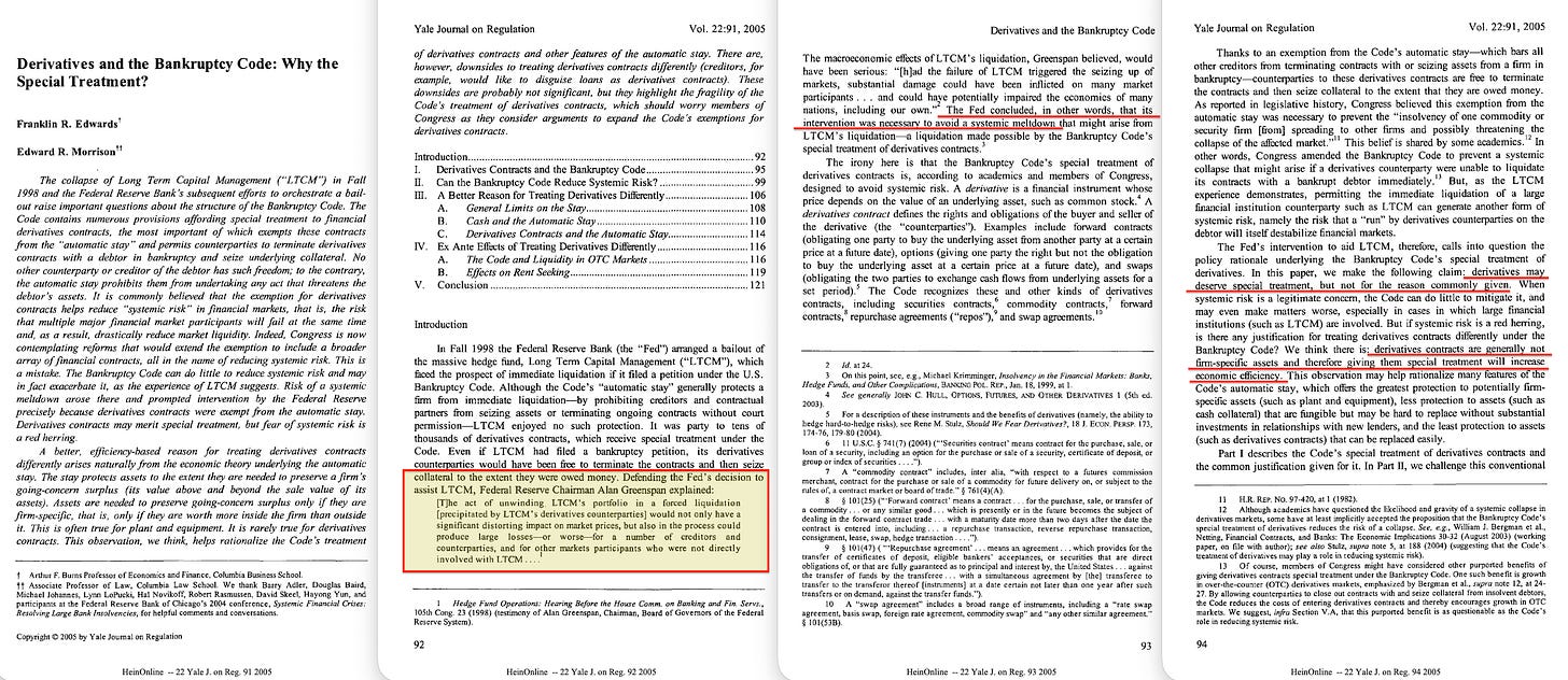 In other words, the ‘efficiency’ argument is not about protecting depositors or ordinary customers. It’s about protecting the dealer network — the institutions on the other side of the derivatives book. The rule is justified as system stability, but its practical effect is priority: it creates a fast lane for large counterparties while everyone else — including you — waits in the normal queue.