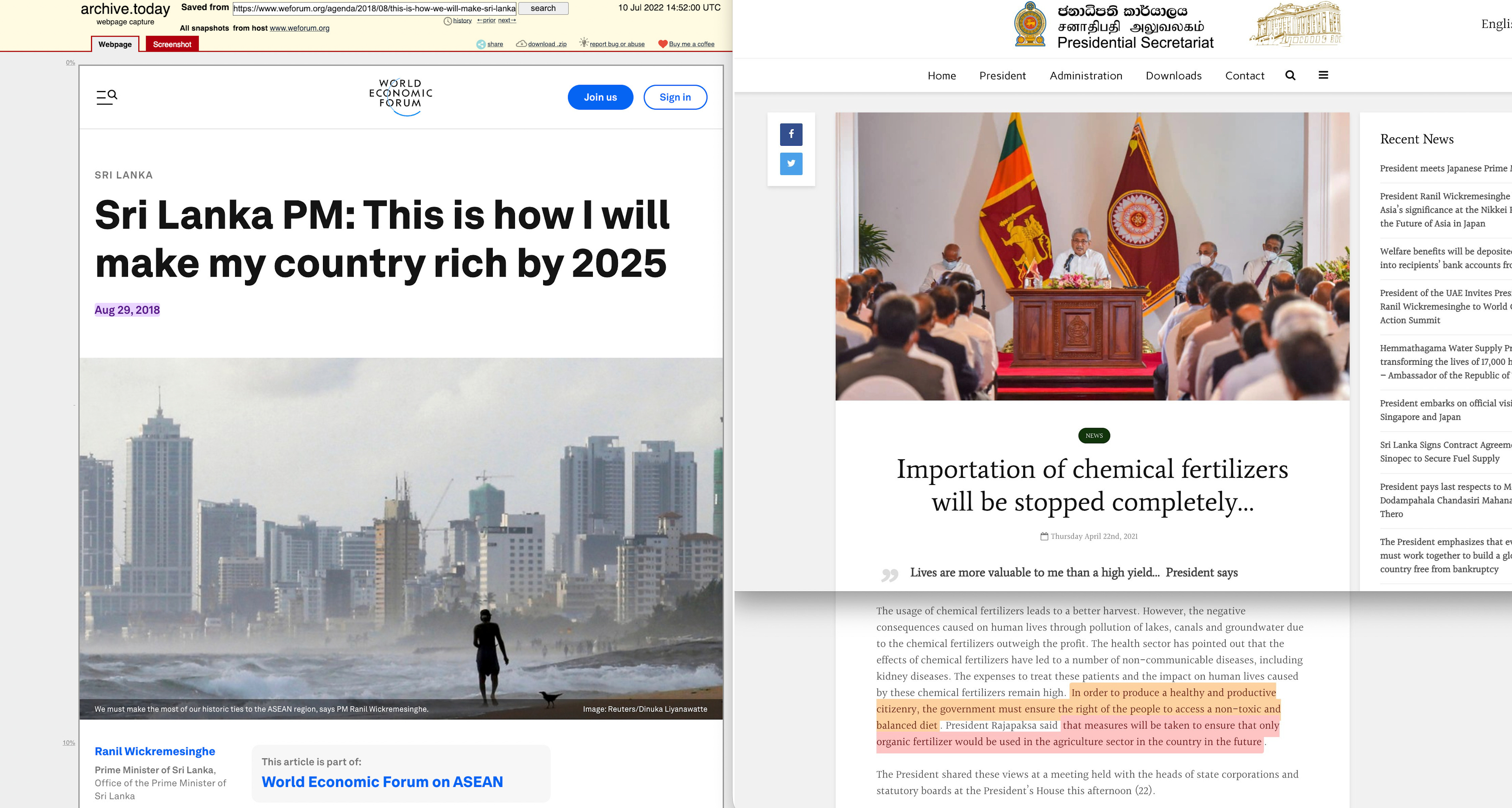 Sri Lanka demonstrated how this channel works. In April 2021, President Rajapaksa banned synthetic fertiliser imports, explicitly aligning Sri Lanka with SDG targets for reduced chemical inputs and sustainable agriculture11. The policy had been encouraged by Vandana Shiva, an Indian activist with no formal agricultural training who had advised Rajapaksa on organic transition. At a UN Committee on World Food Security event in June 2021, Rajapaksa announced the ban as ‘resolute policy action’ for agroecology12 — and received applause from FAO officials who praised it as a bold step forward.