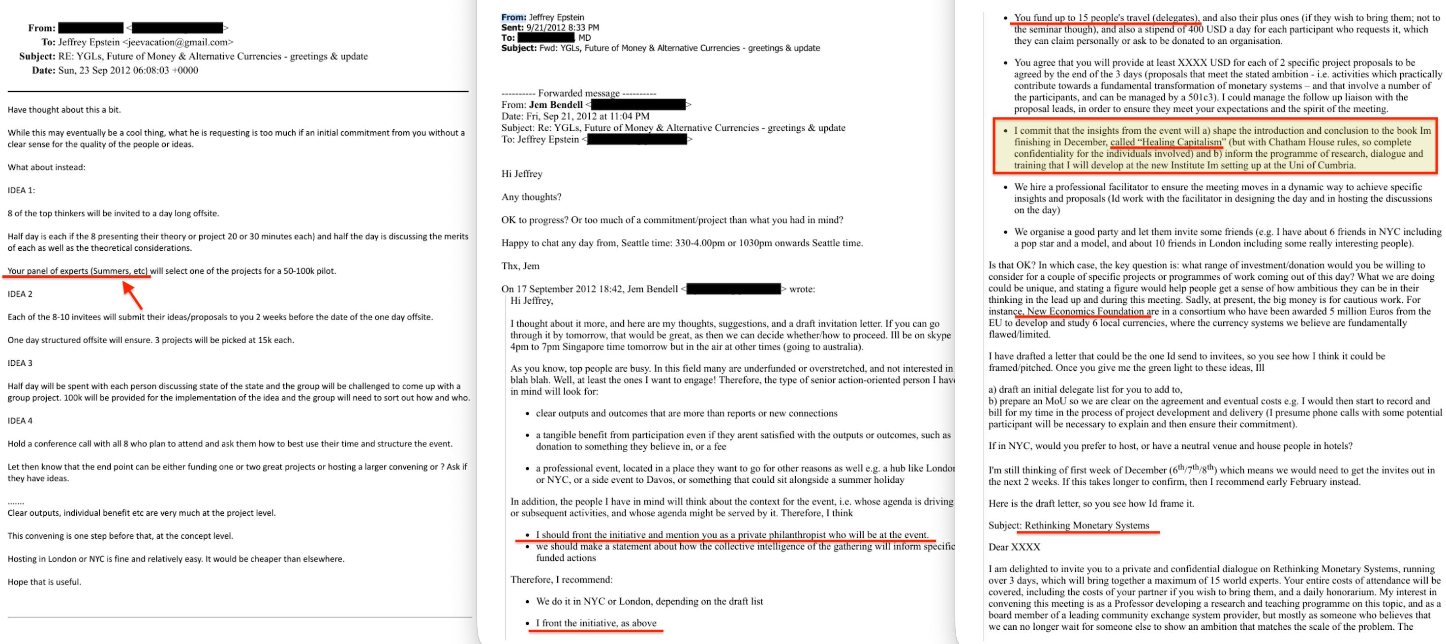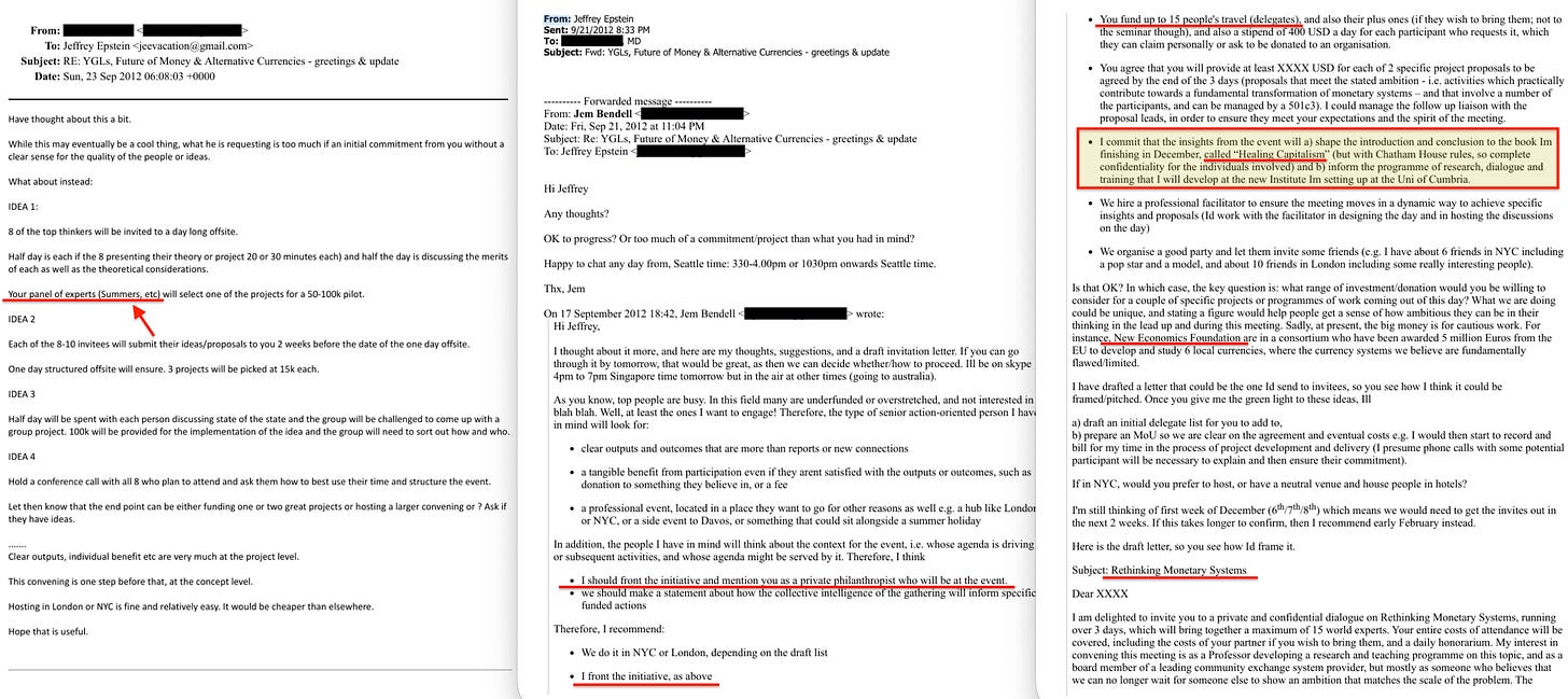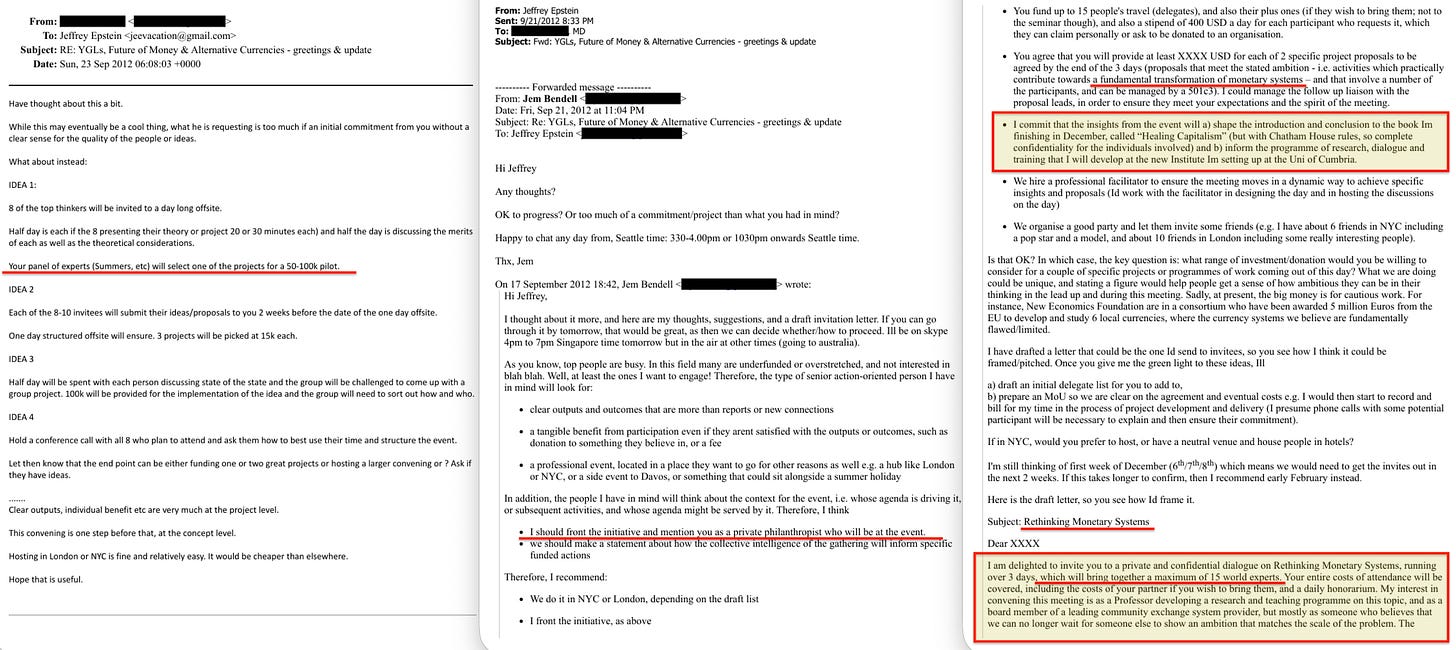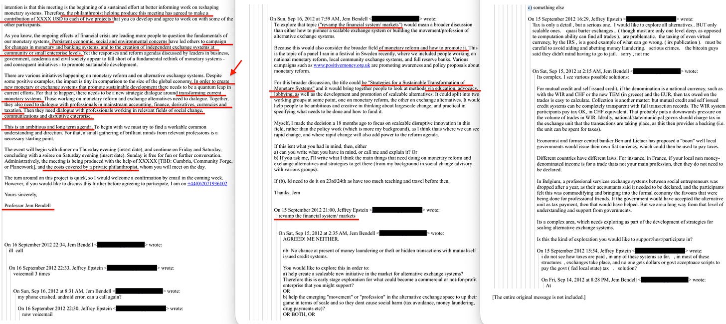 Bendell excused himself, and within days had agreed to lead a private initiative to ‘revamp the financial system/markets’ — funded by Epstein, structured outside WEF oversight, and governed by Chatham House rules guaranteeing participant anonymity.