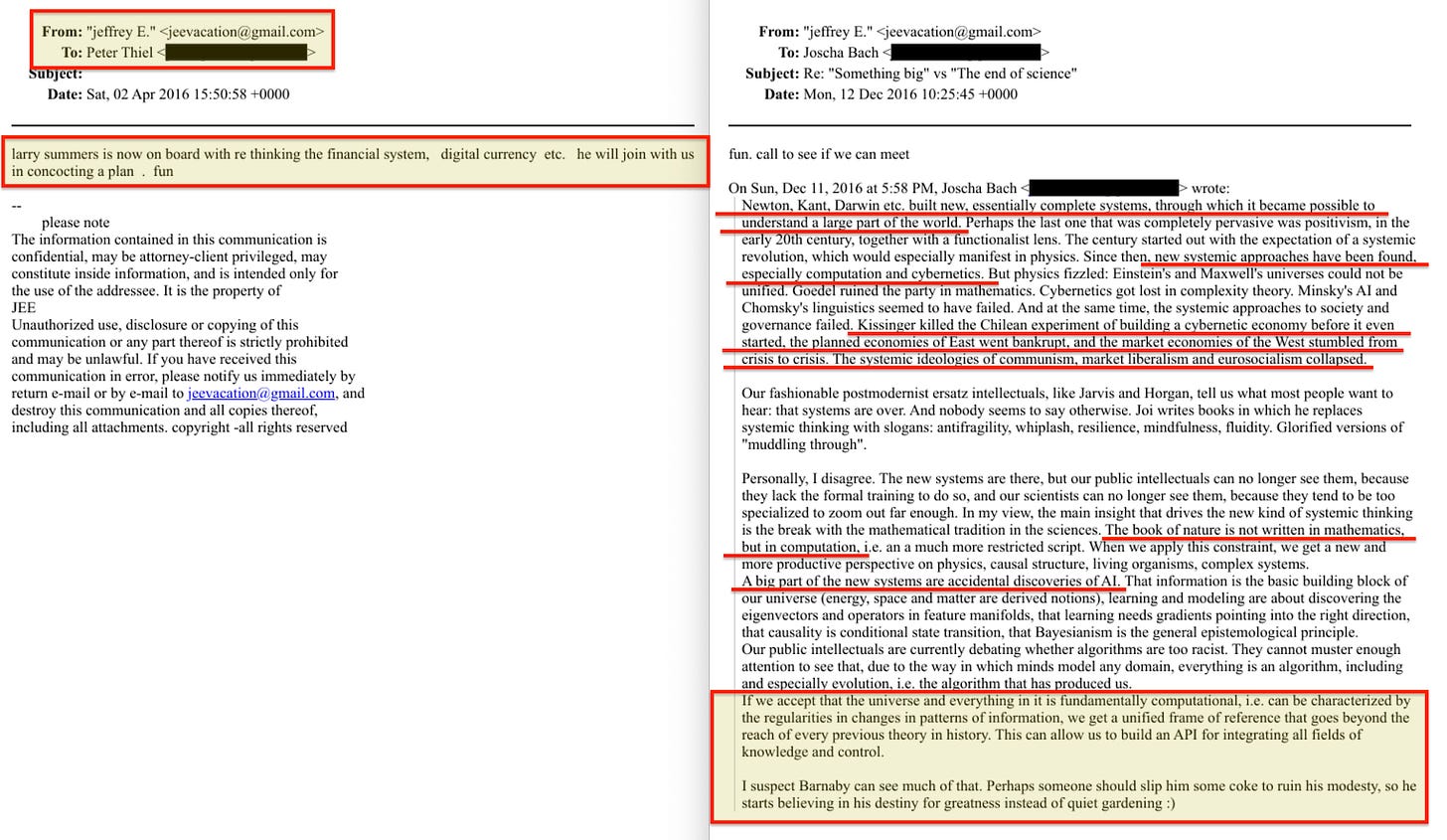 On 2 April 2016, he emailed Peter Thiel27: ‘larry summers is now on board with re thinking the financial system, digital currency etc. he will join with us in concocting a plan. fun’. Two weeks later, he sent Summers a detailed specification for tokenised digital currency. Summers replied within hours28: ‘Got it. If I can't get current regime fixed I will fix’.
