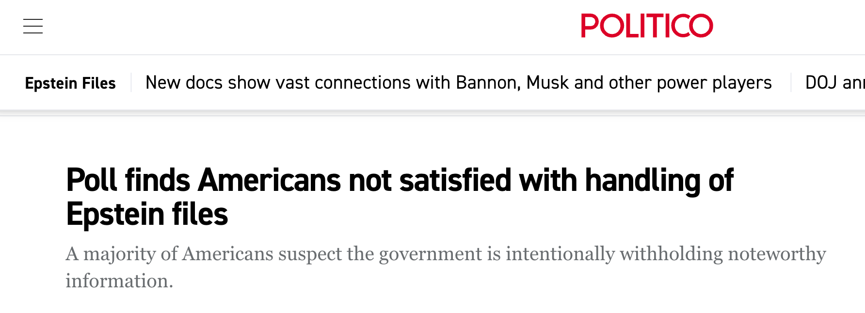 As for the effort of distraction, we see a similar pattern unfold today with the release of Epstein’s emails. Whatever Epstein got up to with minors, however awful, is secondary in this context.
