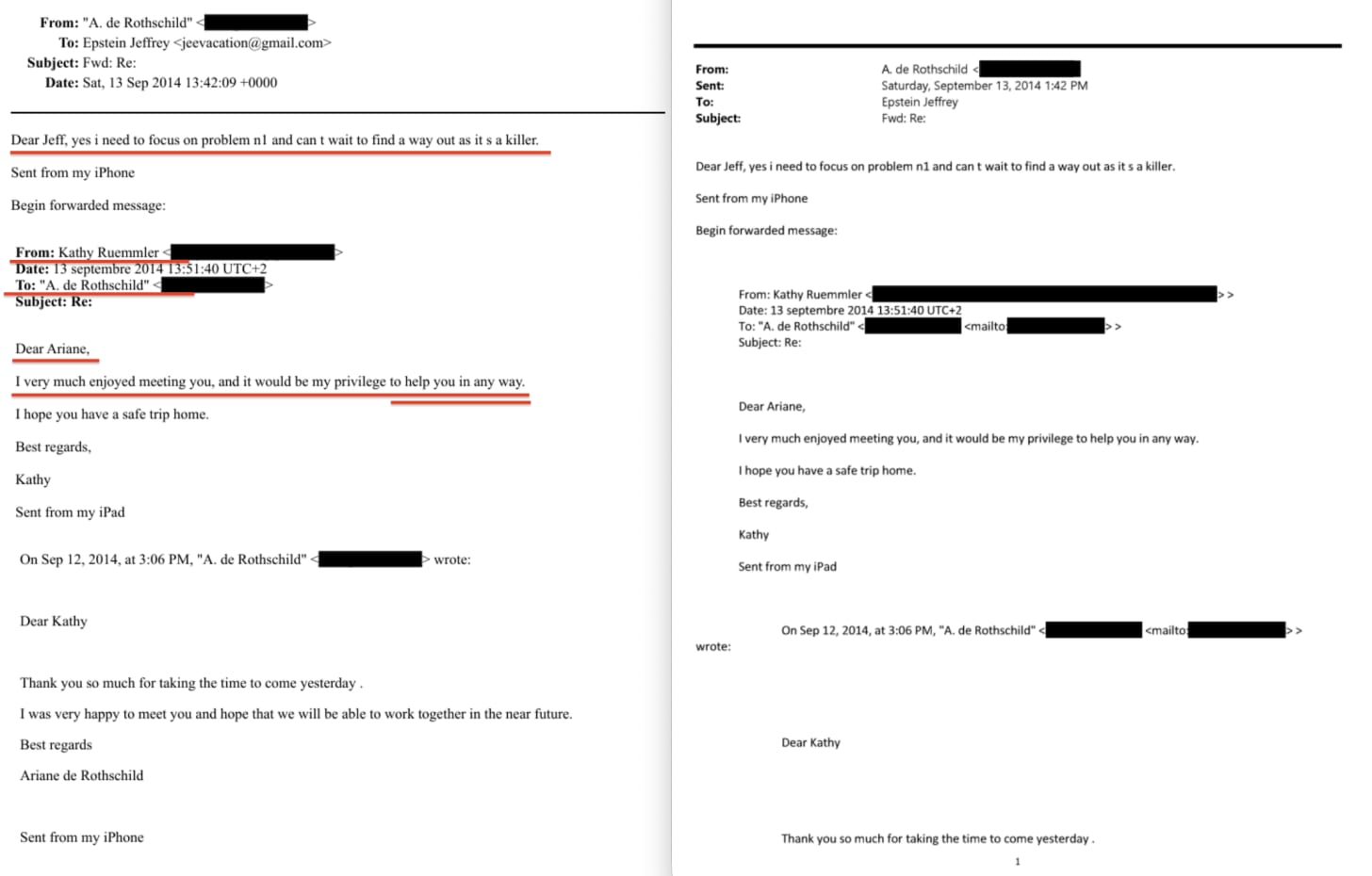 Ariane de Rothschild served as the connection between the intelligence and financial architecture documented in the Epstein files. Lynn Forester de Rothschild served the same function for the political architecture documented in the Podesta emails. The family’s position at the junction of both networks is visible in two independent archives that were never meant to be read together.