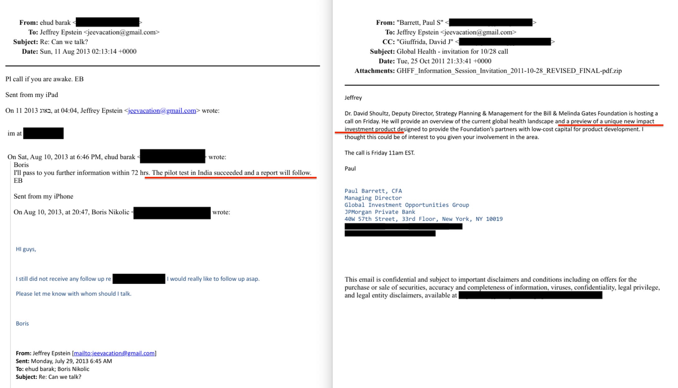 On August 10, Barak had emailed Boris Nikolic through Epstein reporting that ‘the pilot test in India succeeded and a report will follow’42 — biometric digital identity linked to financial transactions, confirmed operational at population scale.