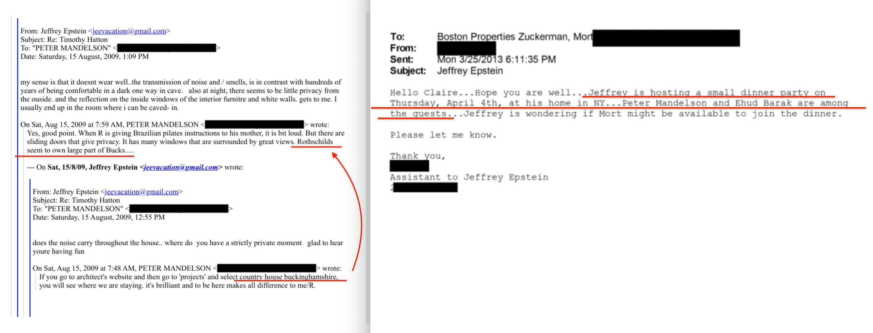 On March 25, 2013, Epstein’s assistant invited Mort Zuckerman to ‘a small dinner party on Thursday, April 4th, at his home in NY...Peter Mandelson and Ehud Barak are among the guests’39. The former EU Trade Commissioner and the former Israeli Defence Minister, paired at Epstein’s table. Mandelson was subsequently asked, through Epstein, to join the board of a company controlled by Sultan Bin Sulayem — Chairman of DP World, one of the world’s largest port operators, controlling trade infrastructure across eighty-three countries40.