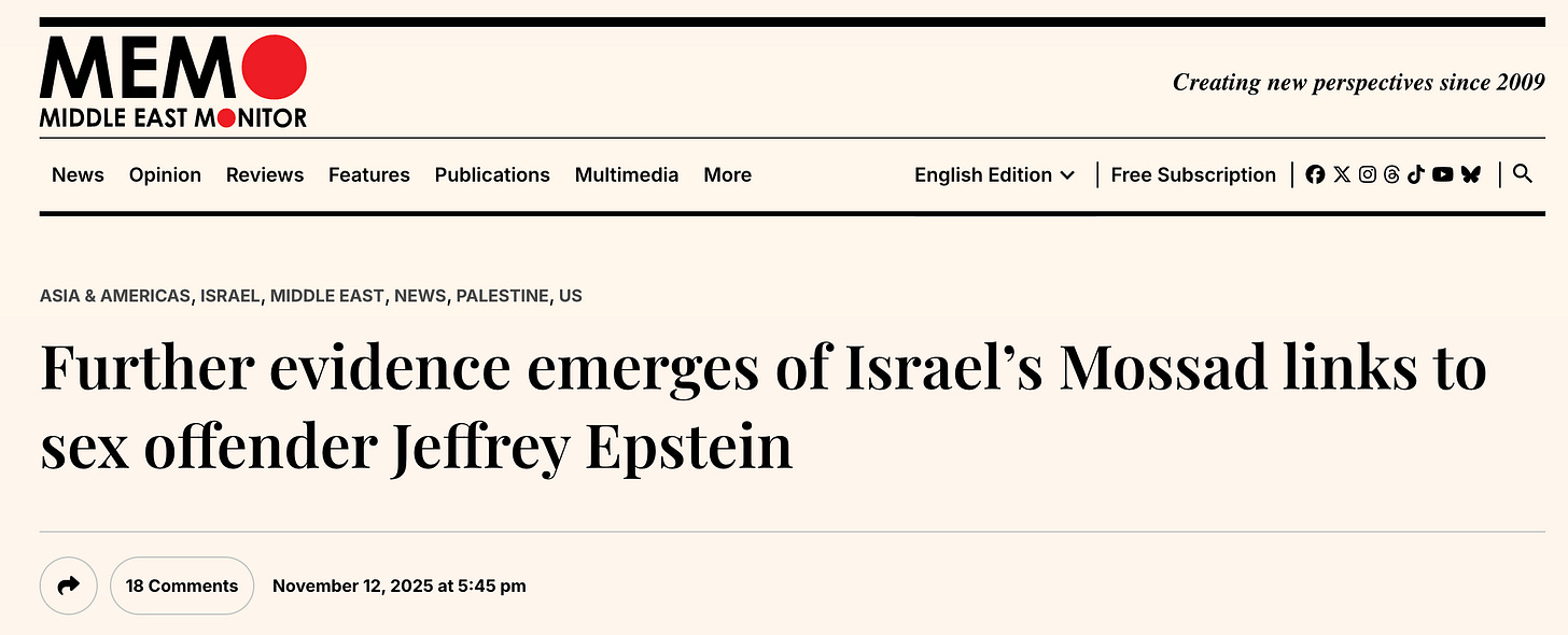 Now, with the Epstein correspondence documenting Israeli and American intelligence channels in detail, the same deflection has appeared on cue.