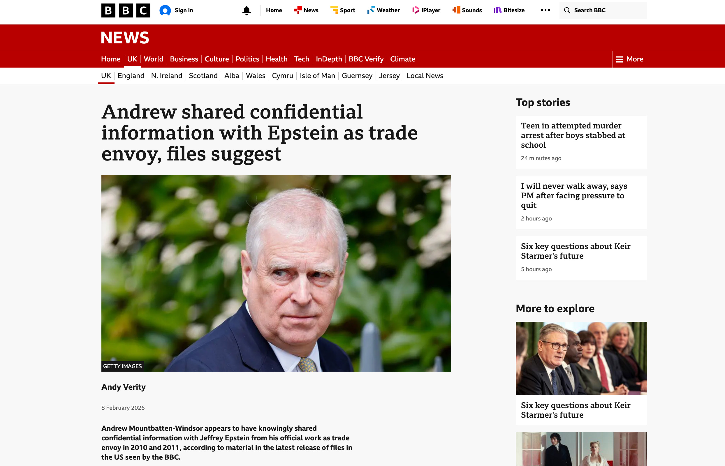 Starmer’s chief of staff resigned on Sunday, February 8, 2026 for advising the appointment. Starmer himself publicly apologised to Epstein’s victims for ‘having believed Mandelson’s lies’. The fallout has not stopped, with many politicians now calling for the Prime Minister to step down139.