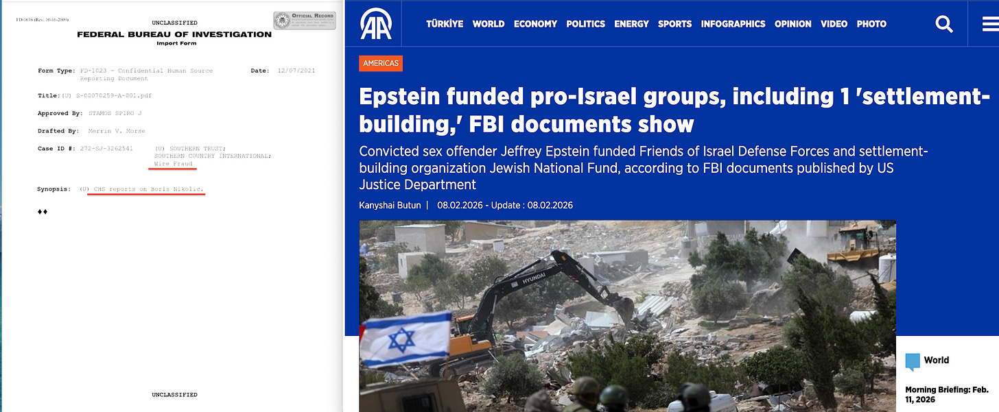 The January 2026 release also confirmed that through his COUQ Foundation, Epstein funded the Friends of the Israeli Defence Forces and the Jewish National Fund — a settlement-building organisation — in 2006125.