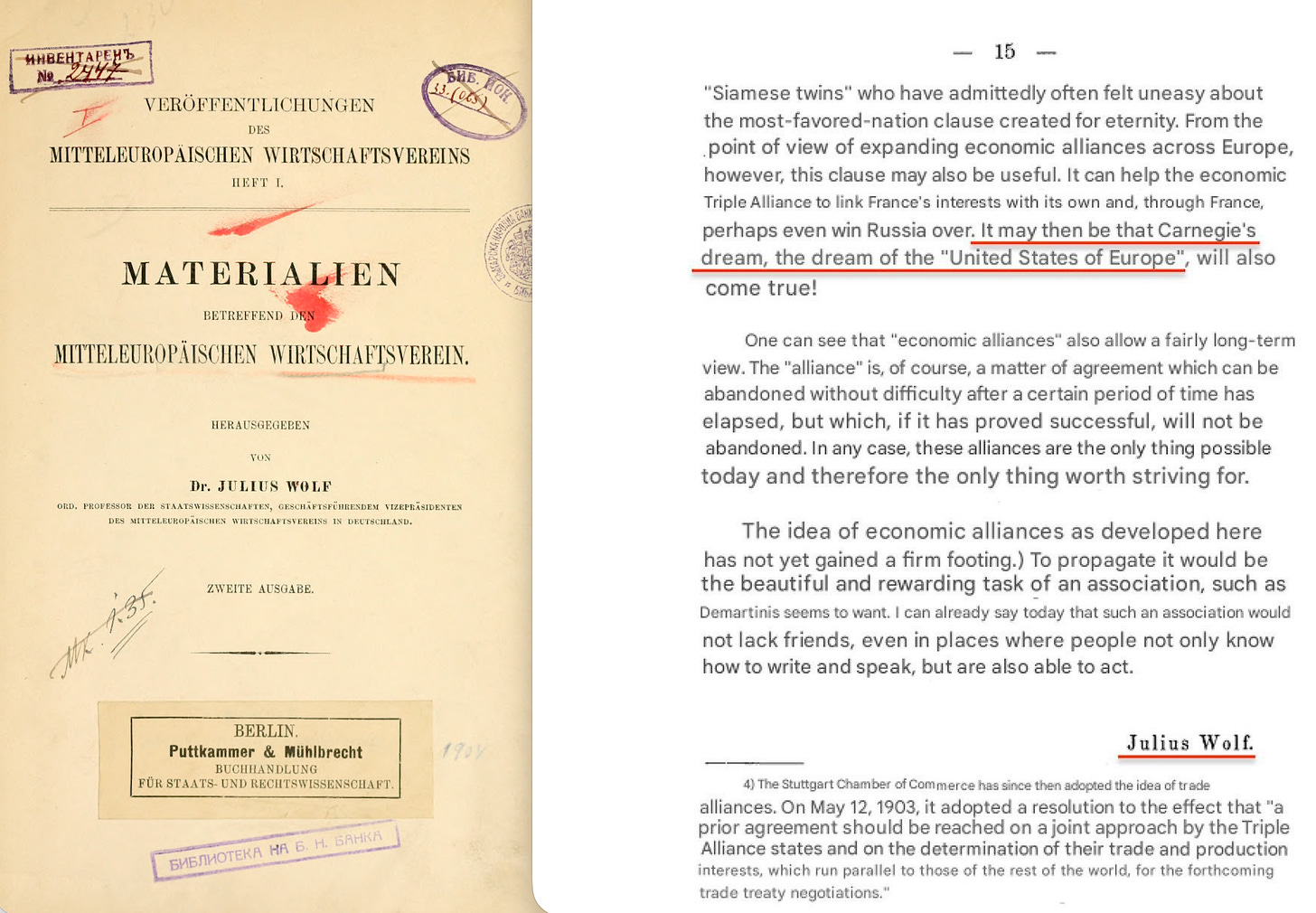 The founding charter even cited Andrew Carnegie’s call for a ‘United States of Europe’.