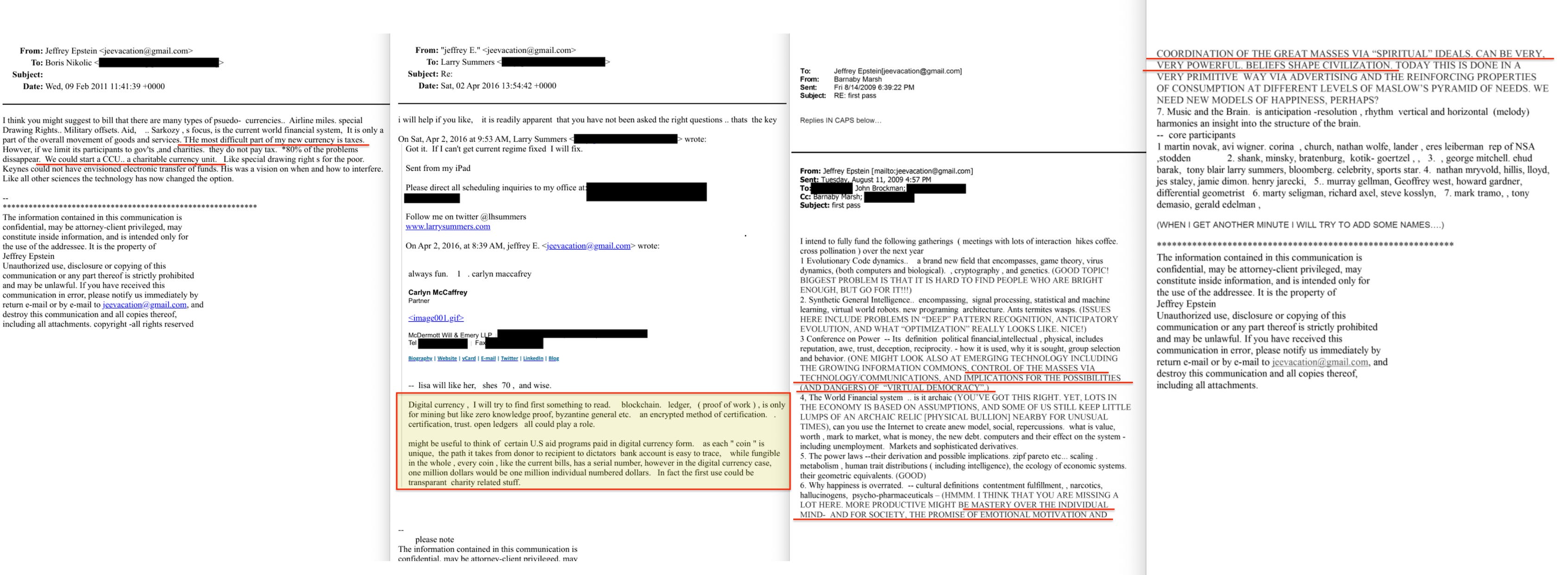 Barnaby Marsh, one of Epstein's regular intellectual collaborators, annotated the same agenda226. Under the topic on power, he added: 'control of the masses via technology/communications, and implications for the possibilities (and dangers) of virtual democracy'. Under another, he wrote of 'the promise of emotional motivation and coordination of the great masses via spiritual ideals', noting that 'beliefs shape civilization' and that current methods were primitive.