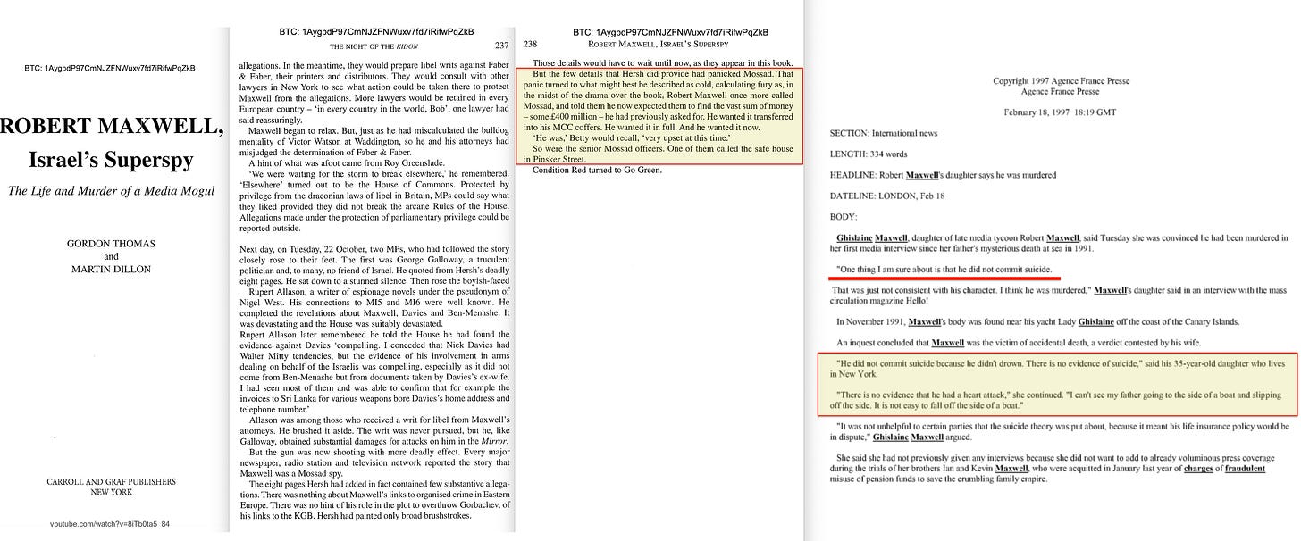 According to multiple intelligence sources, including the authors of Robert Maxwell: Israel’s Superspy, Maxwell had told his Israeli handlers that unless they gave him the money to save his collapsing business empire, he would go public with everything he knew about Mossad’s operations66.