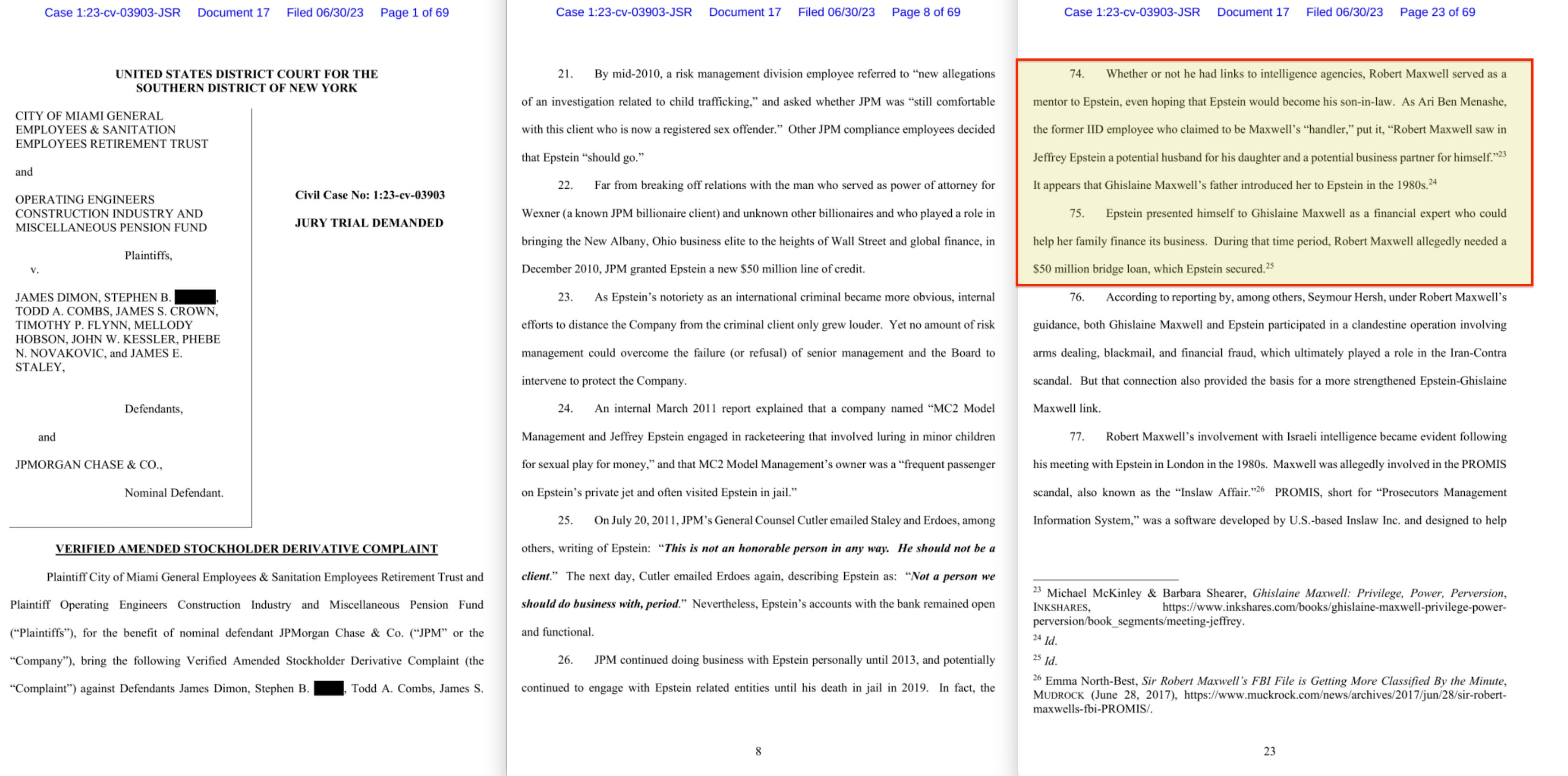 Ben-Menashe’s credibility has been contested, particularly regarding his October Surprise allegations, and his 1991 trial featured prosecution witnesses who contradicted him. His claims regarding Maxwell’s intelligence role are cited here because they are corroborated by Seymour Hersh (The Samson Option, 1991), the UK DTI investigation into Maxwell’s business affairs, the six serving heads of intelligence who attended Maxwell’s funeral, and the verified complaint in Operating Engineers v. Dimon (S.D.N.Y. 2023), 74-75.