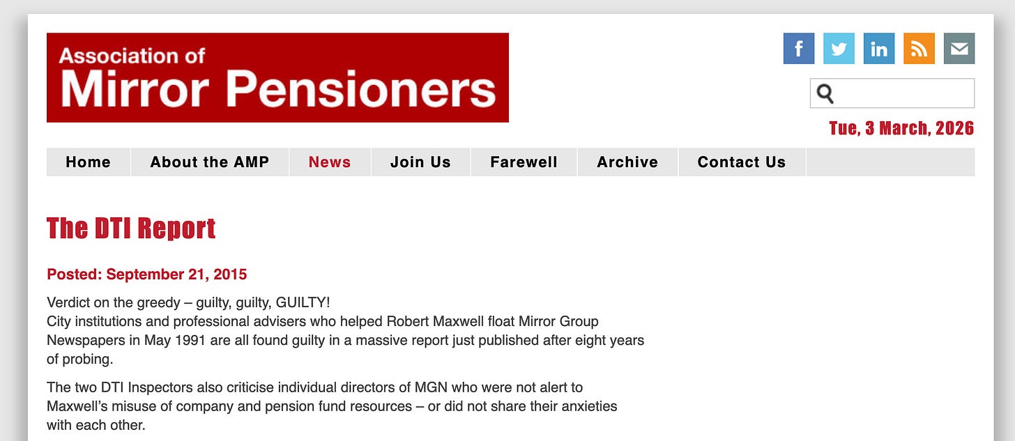 The DTI report into the Mirror Group scandal later criticised Richardson by name62.