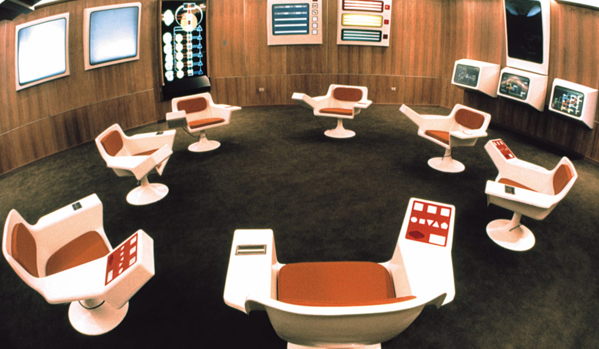 In 1971, the British cybernetician Stafford Beer was hired by Chile’s socialist government under Salvador Allende to build Project Cybersyn30, a system for running the entire national economy in real time31. Data from factories across the country was sent to a central control room, where the government could see what was happening and adjust the flow of resources continuously — like a thermostat, but for an economy.