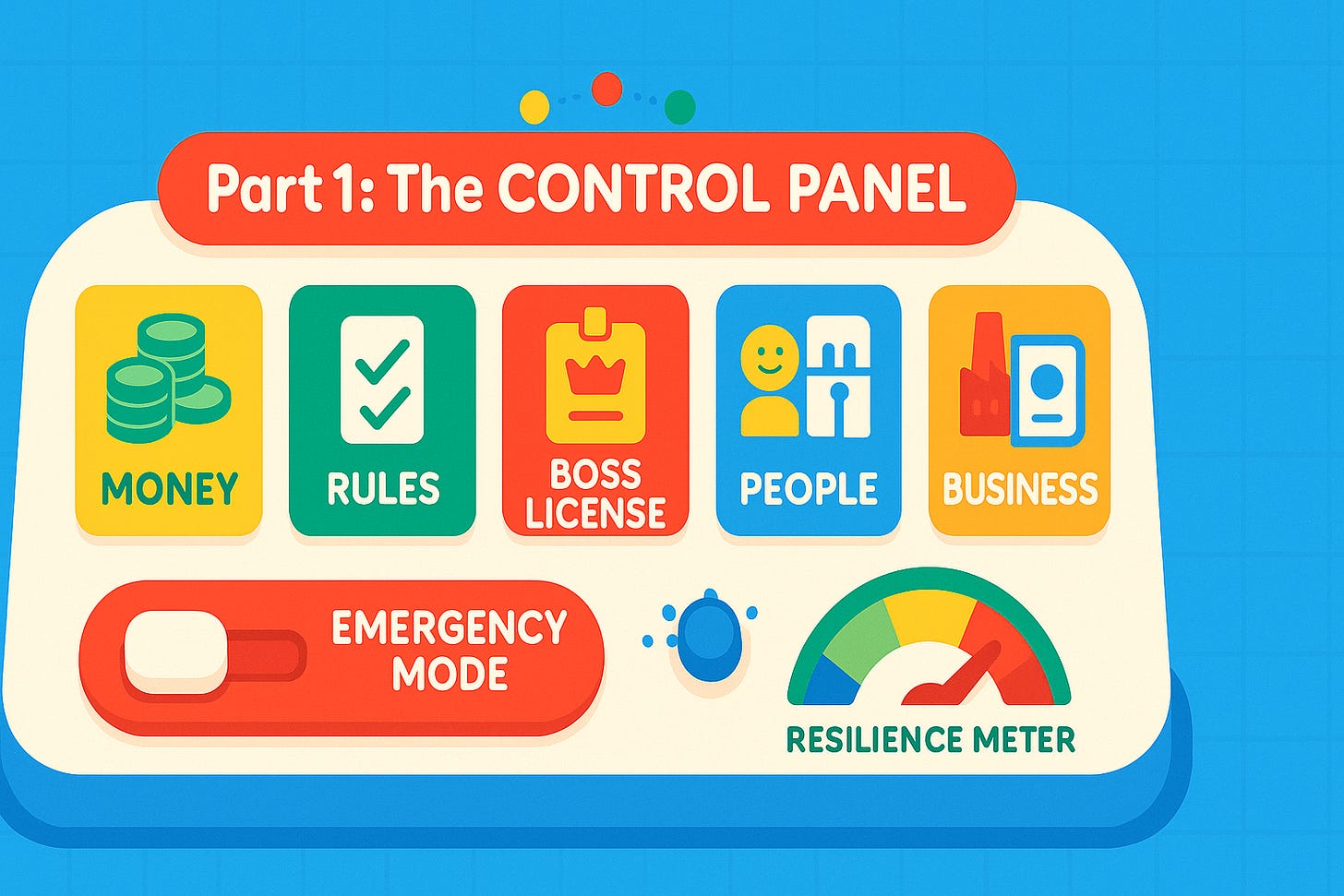 The Buttons (Money, Rules, Health) are how you steer.