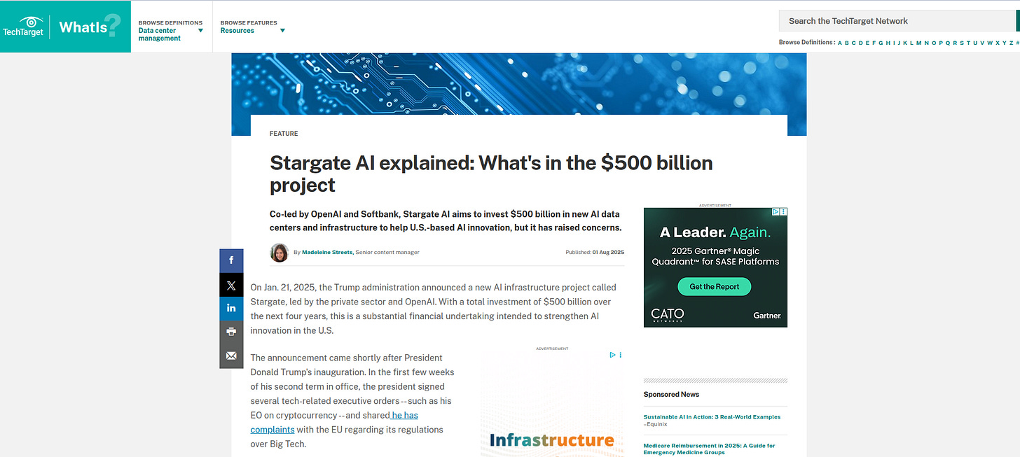 Trump’s recently announced ‘Stargate’ project29 pushes this trajectory into the open. Marketed as a $500 billion leap into an AI ‘Golden Age’, it is less about research than about building planetary governance infrastructure. Massive data centres, designed to process exabytes in real time, would be co-funded by state authority and private capital but operated by a consortium of corporate giants — OpenAI, Oracle, SoftBank, and others. What Palantir performs at the platform layer, Stargate proposes to scale into hardware: the physical backbone through which governance itself is computed.