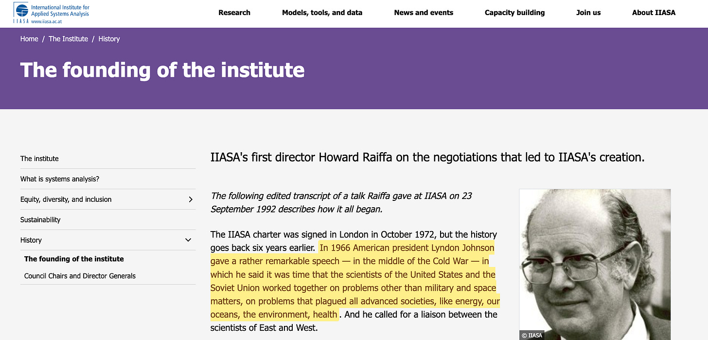 Just months after the May 1972 environmental agreement was signed, both superpowers collaborated to establish IIASA in neutral Austria. IIASA's mission? To perform global computational modelling using data streams from the surveillance systems they had just agreed to build.