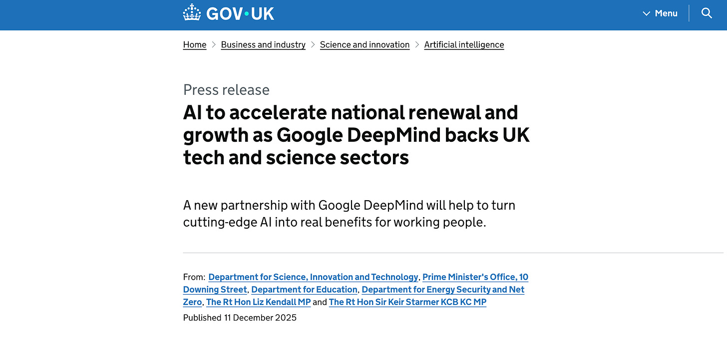 The UK government simultaneously announced the potential for ‘Gemini for Government’ to ‘cut bureaucracy, automate routine tasks, and free up civil servants’26.