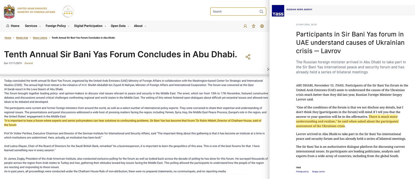 This was eleven days before the inaugural Sir Bani Yas Forum on International Peace and Security5.