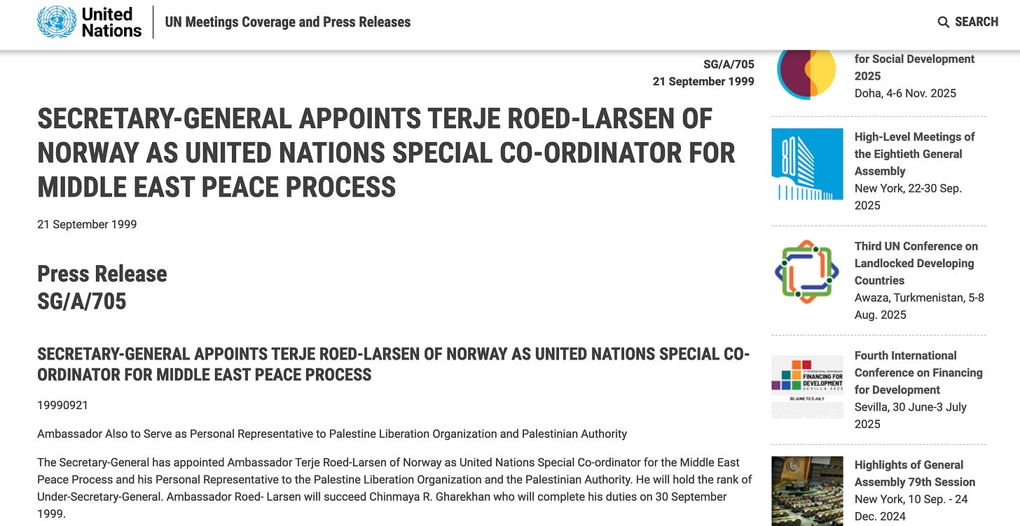 Rød-Larsen’s career was built on precisely this skill. As director of the Fafo Institute in Oslo, he initiated the research project on Palestinian living conditions that opened the secret channel between Israel and the PLO31 — the backchannel that produced the Oslo Accords32. He did not negotiate the accords — he organised the conditions under which negotiation became possible. The skill earned him international fame, a succession of senior UN appointments, and the presidency of the International Peace Institute from 200533.