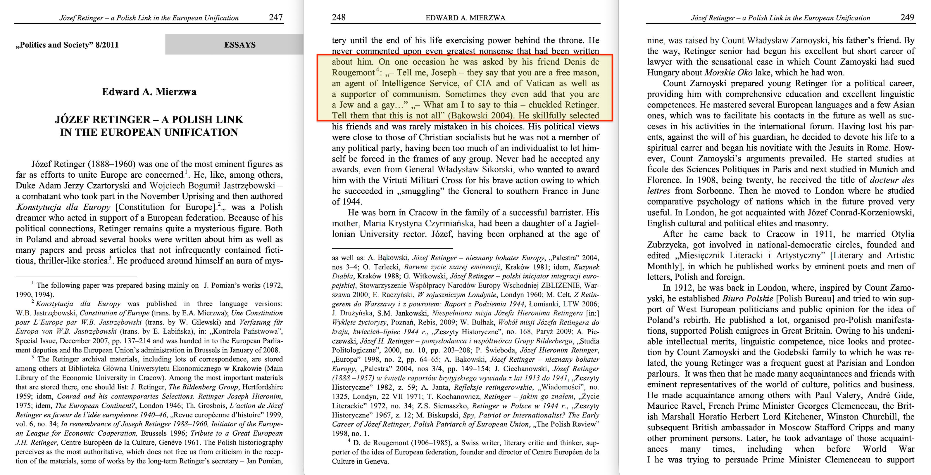 Every intelligence service thought he worked for a different one. Nobody shut him down. When an associate listed the accusations — freemason, agent of MI6, agent of the CIA, agent of the Vatican, communist sympathiser — Retinger laughed: ‘Tell them that this is not all’69.