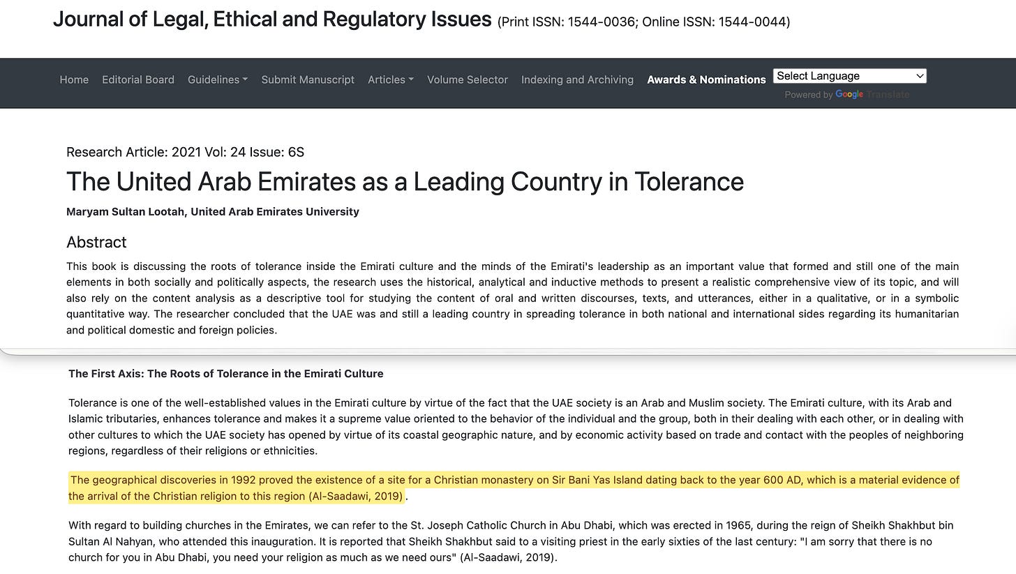 The forum takes its name from Sir Bani Yas Island, the UAE’s largest natural island. The island hosts the country’s oldest and only known ancient Christian site — a Church of the East monastery discovered in 1992, dating to the seventh and eighth centuries59. The monastic community thrived from around 600 to 750 AD, continuing for at least a century after the arrival of Islam.