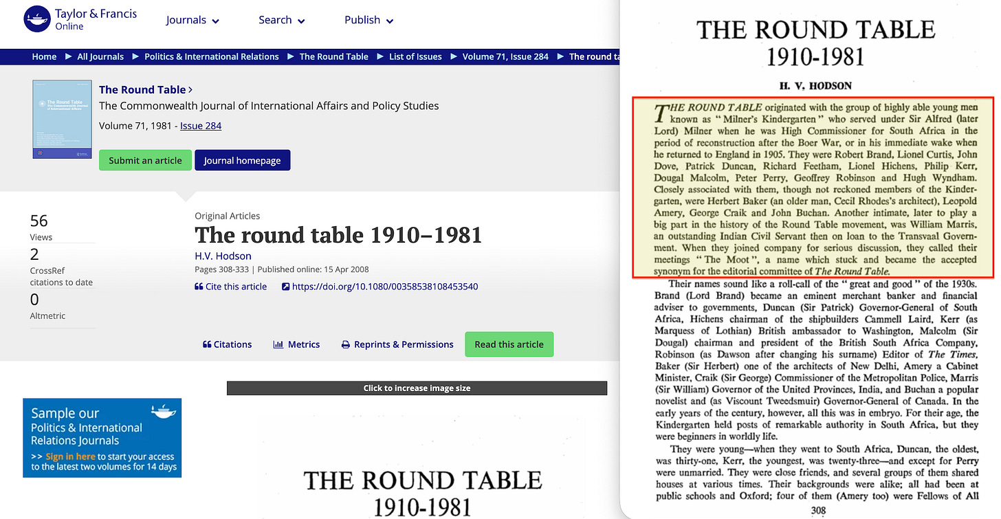 The round table is one of the oldest techniques for manufacturing consensus among people who would otherwise have no reason to agree with one another. Cecil Rhodes formalised it6. The Royal Institute of International Affairs and the Council on Foreign Relations institutionalised it. The Bilderberg Conference perfected it7.