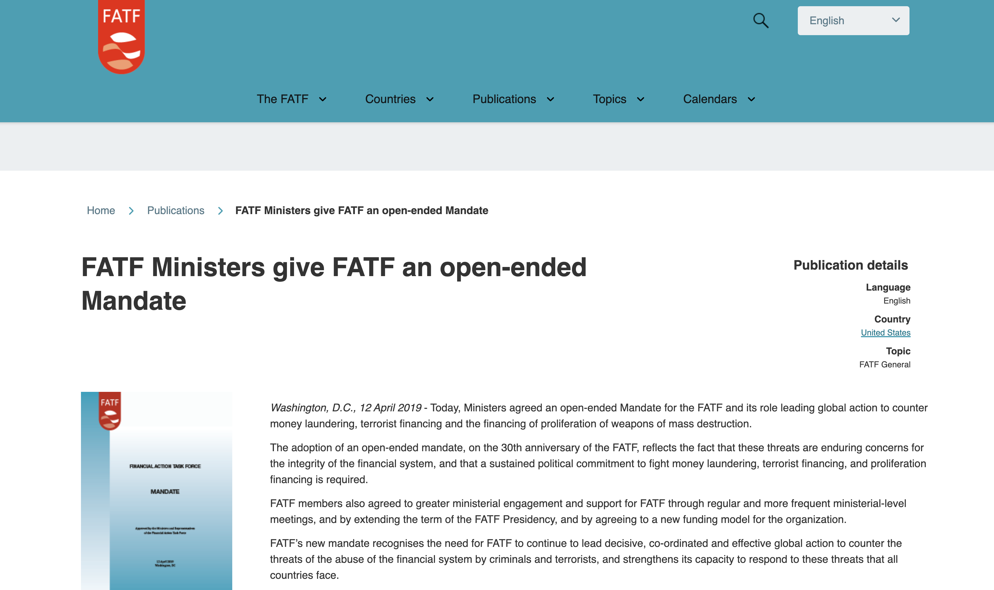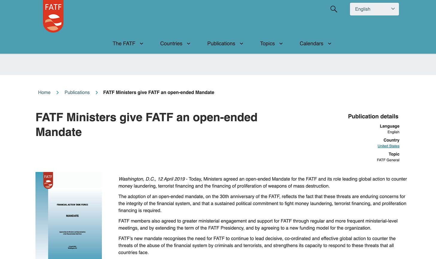 FATF was created by G7 announcement, not by treaty1. It has expanded its mandate repeatedly — from drug money to terrorist financing to weapons proliferation to environmental crime — without returning to any legislature for approval.
