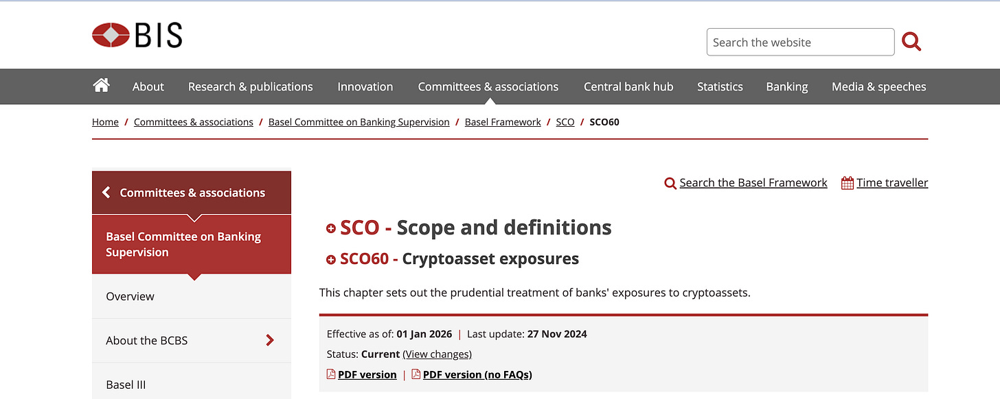 Basel issues SCO6037 — assigning ‘Group 2’ cryptoassets a 1,250% risk weight. Dollar-for-dollar capital requirements.