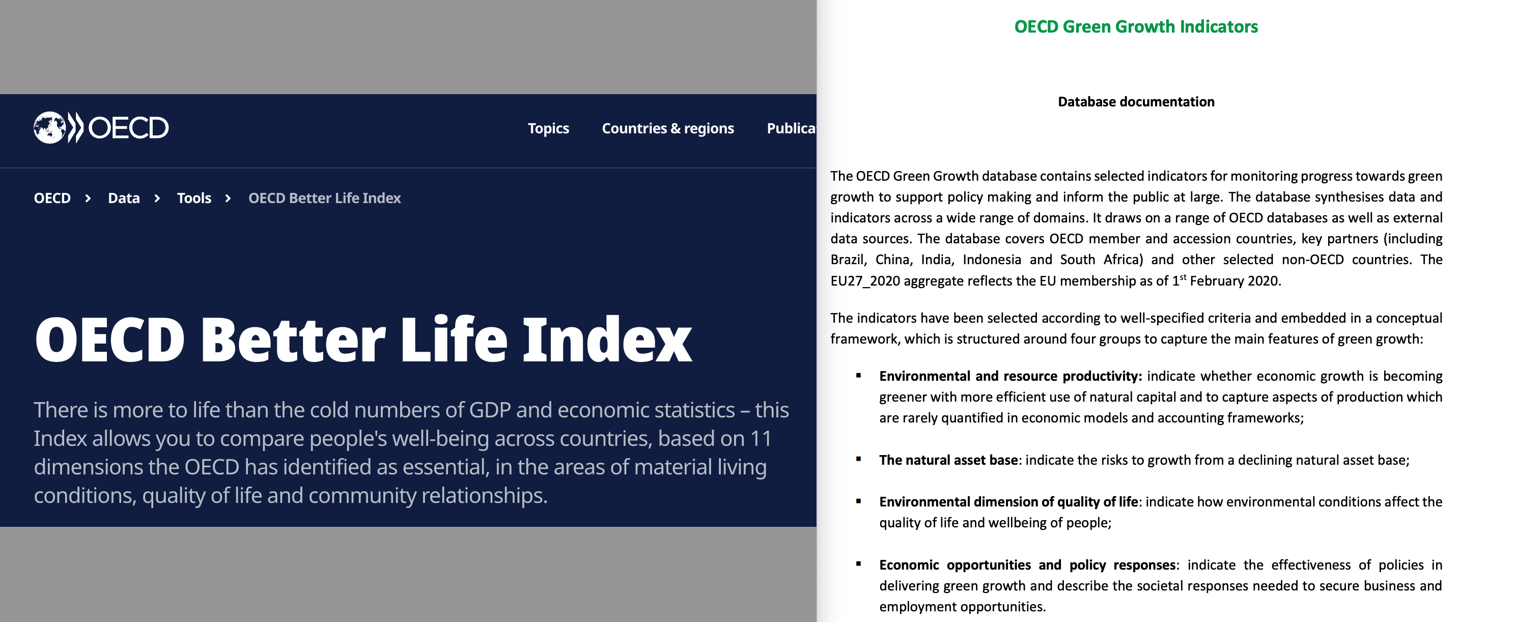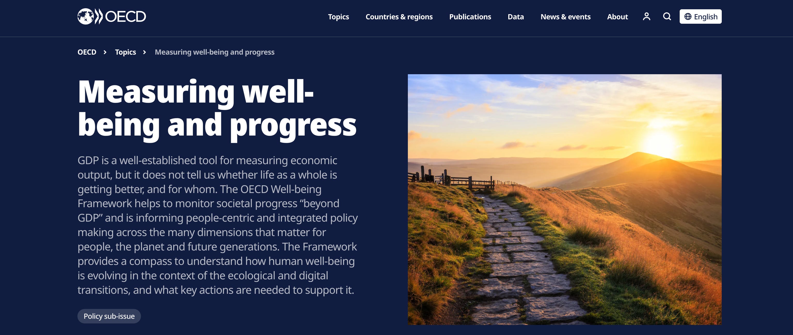 OECD → metrics ←→ 'Beyond GDP, well-being for all'