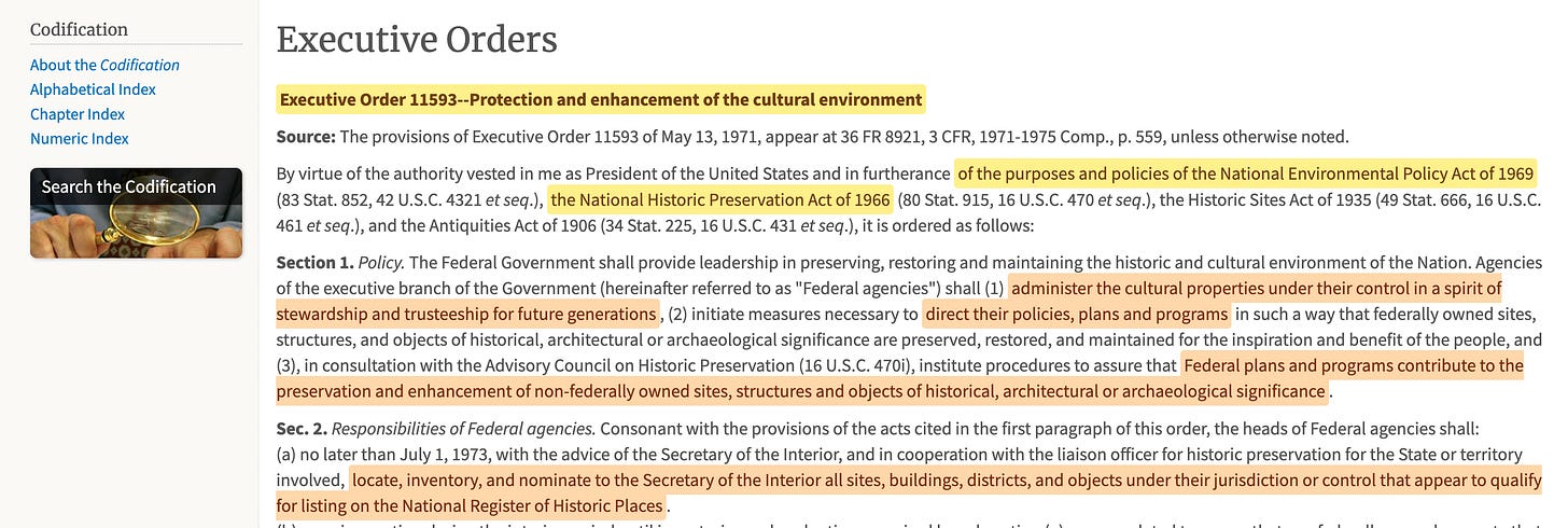 Nixon also passed Executive Order 1159314, which in short created a list of national heritage sites -