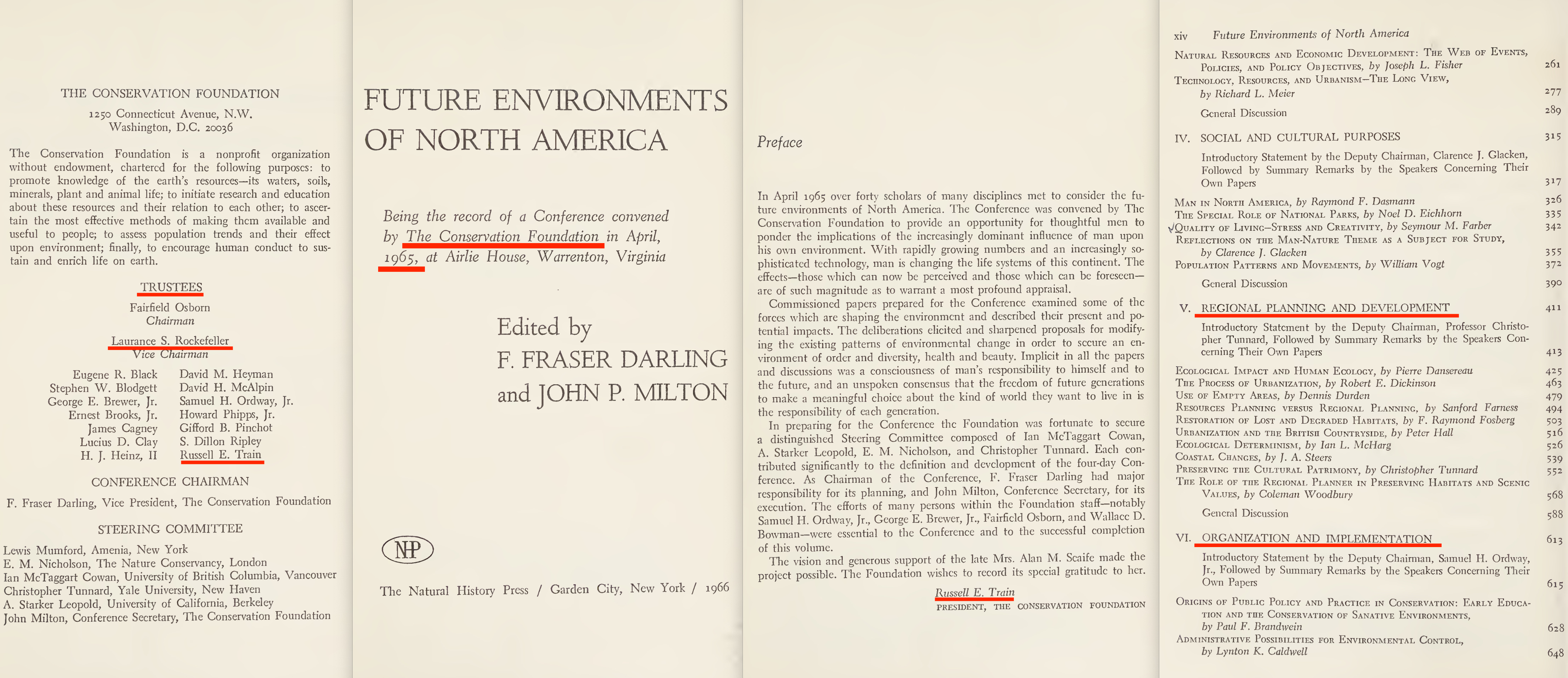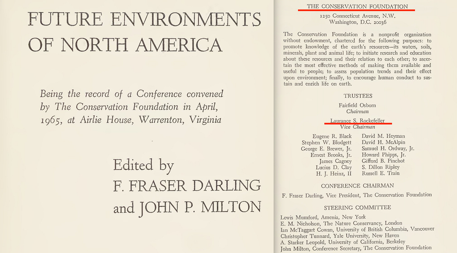 … and in 1965, a conference titled ‘Future Environments of North America‘ was arranged. It’s more planning and organising, but what’s of further note is that Laurance Rockefeller is identified as the vice chairman of the Conservation Foundation -