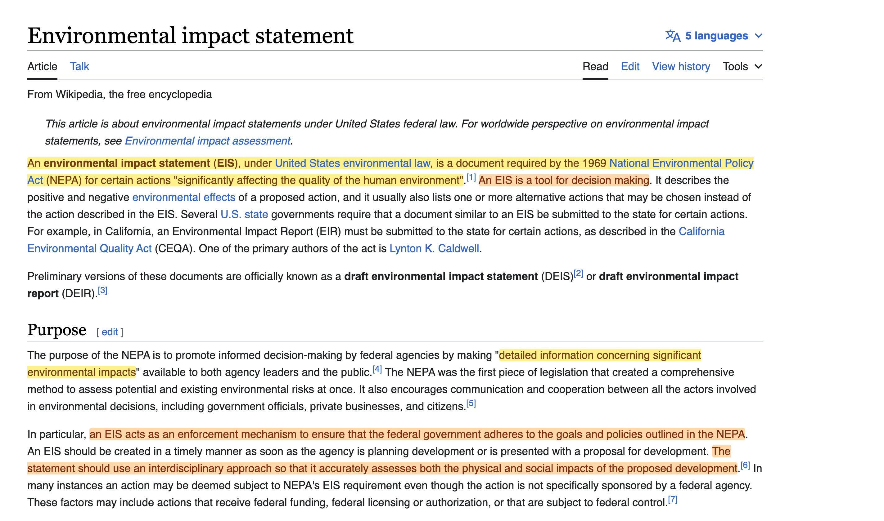The Environmental impact statement (EIS) process described you can find over here11. Should be fairly obvious how this relates to even contemporaty efforts, where everything is required to environmentally monitored, judged, and offset.