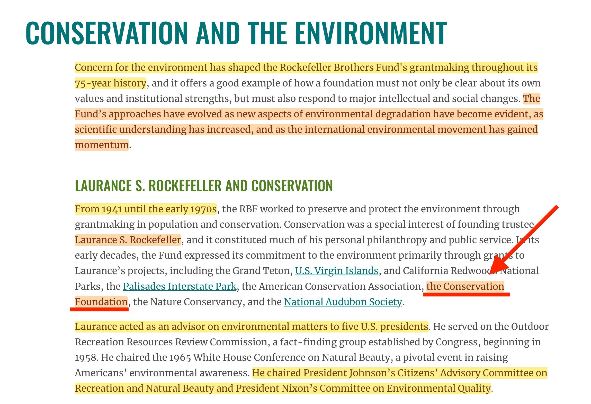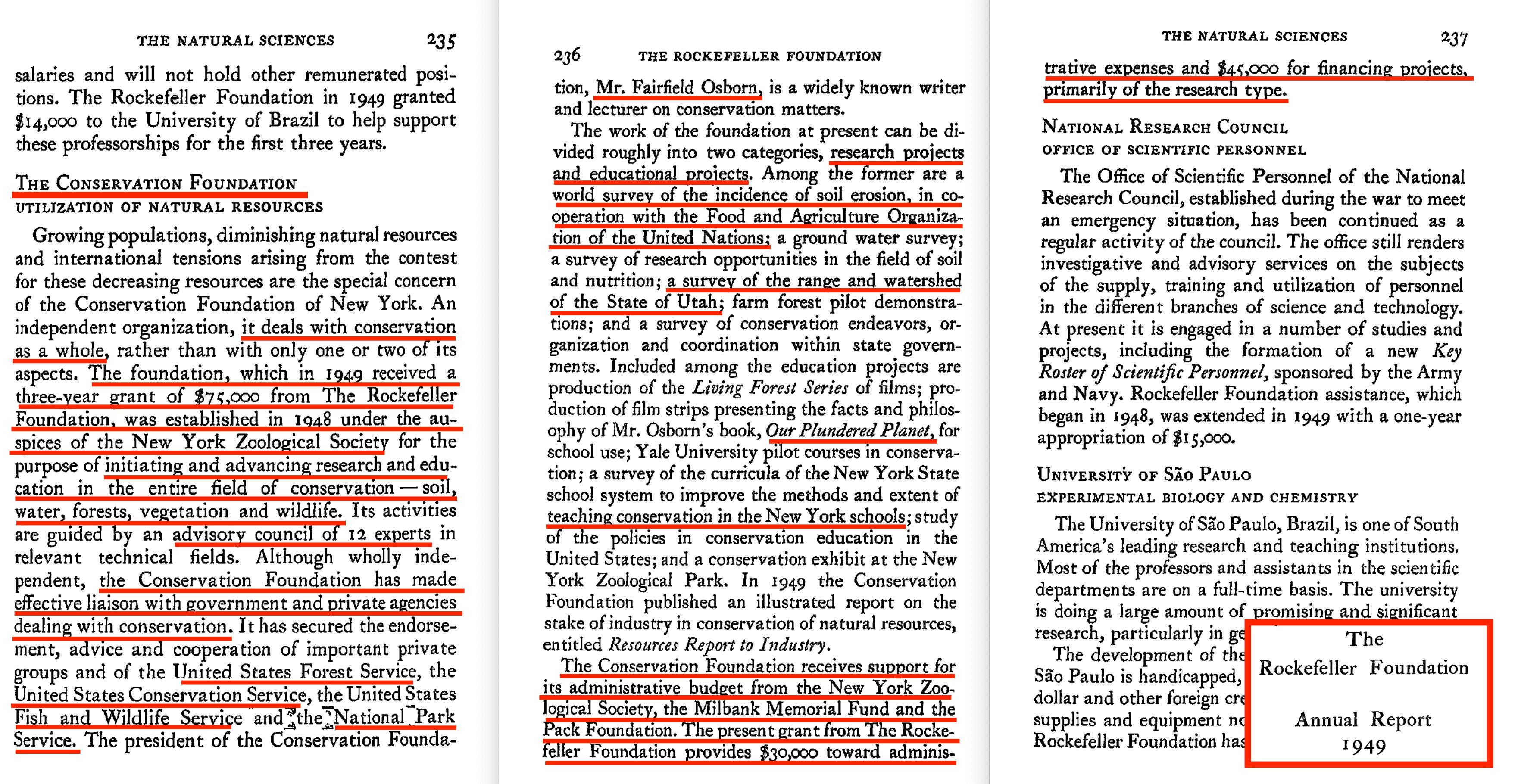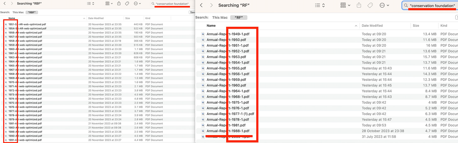 So in my best efforts of remaining impartial when it comes to all matters relating to Rockefeller, let’s have a quick look through their annual reports. In fact, let’s have a quick search for ‘Conservation Foundation’. And… it’s fairly conclusive.