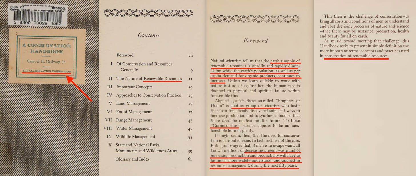 As for their reports… well, they tell somewhat of a story. Fairfield Osborn’s 1948 book, ‘Our Plundered Planet’ outlines the problem - which, naturally, is us. Humans. And this is then followed by the detailed ‘Conservation Handbook’ from 1949, also listed above. These are then followed by ‘Vegetation and watershed management‘ from 1953, and ‘The law of water allocation in the Eastern United States‘ from 1956, which relate to the planning, control and management of water resources -